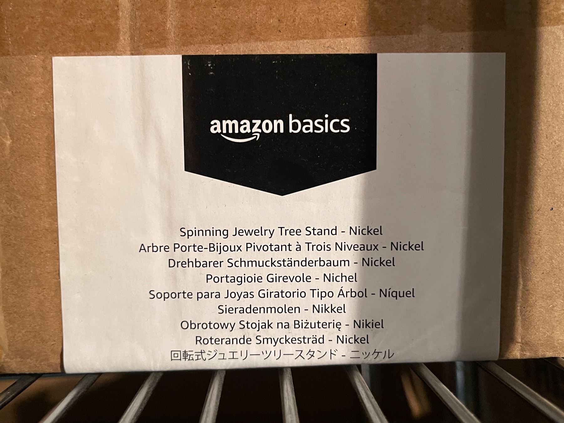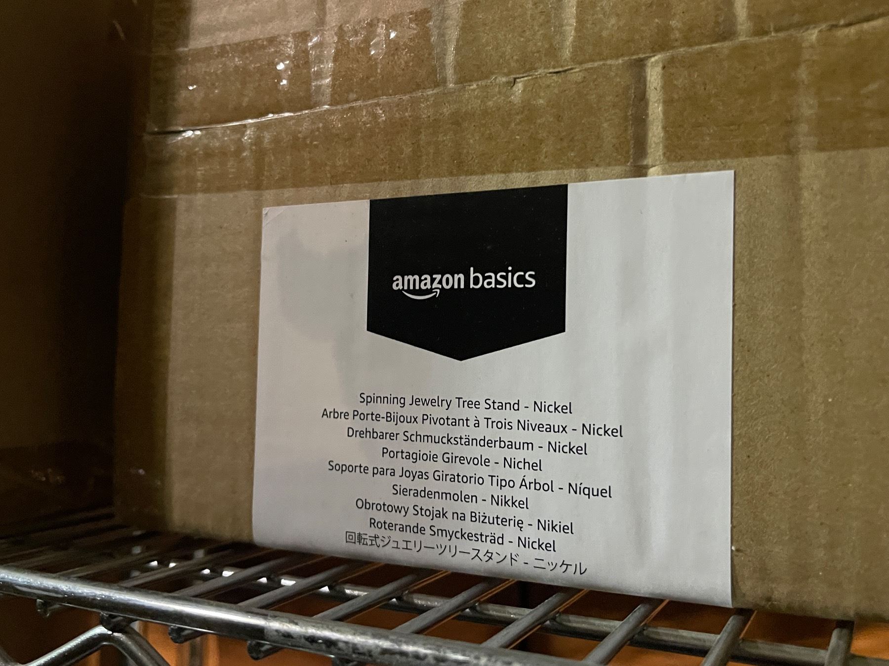 Group of 6 Amazon Basic Spinning Jewelry Stand & 3 Pack of 2 Amazon Basic Storage Bins