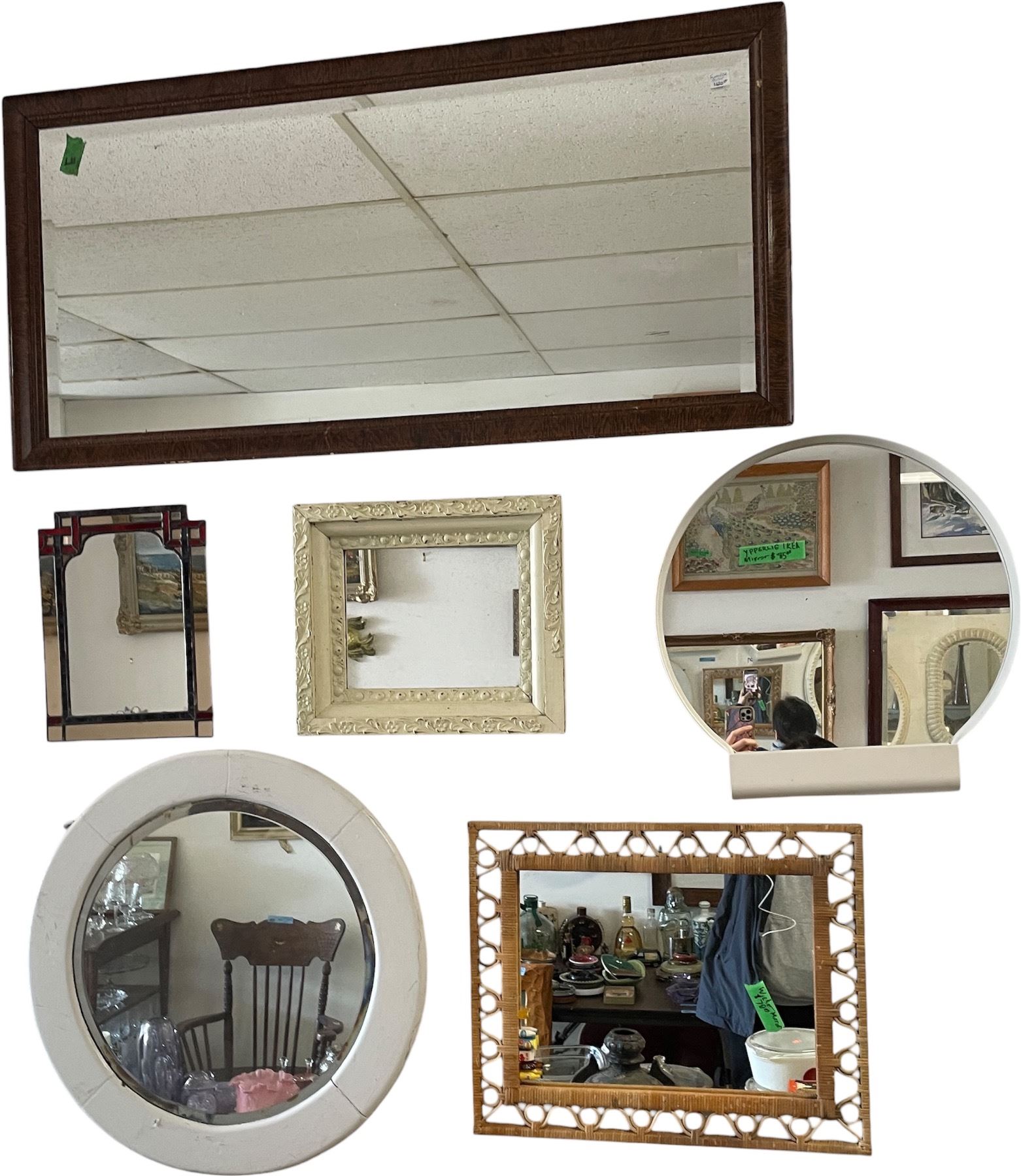 Group of 6 Assorted Wall Mirrors - Various Shapes & Size