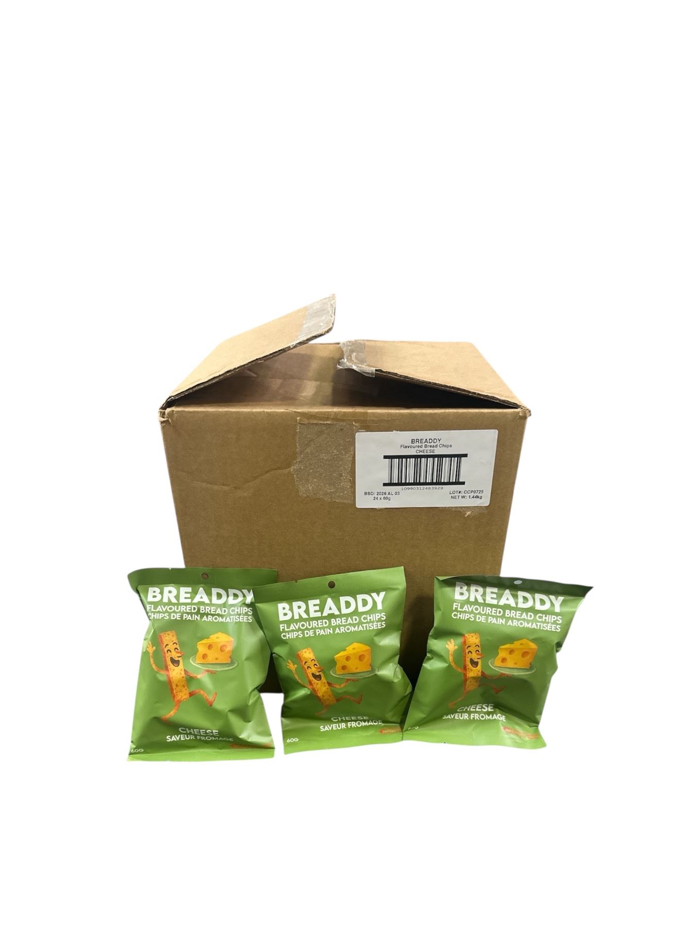 Group of 6 Boxes of Breaddy Flavoured Bread Chips - Cheese 24/Per Box