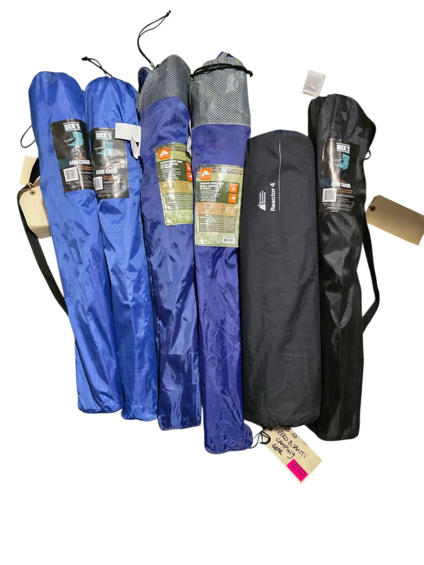 Group of 6 Camping Gear Includes Sleeping Pad, Ozark Trail & Dick's Folding Chairs (Movie Set Items)