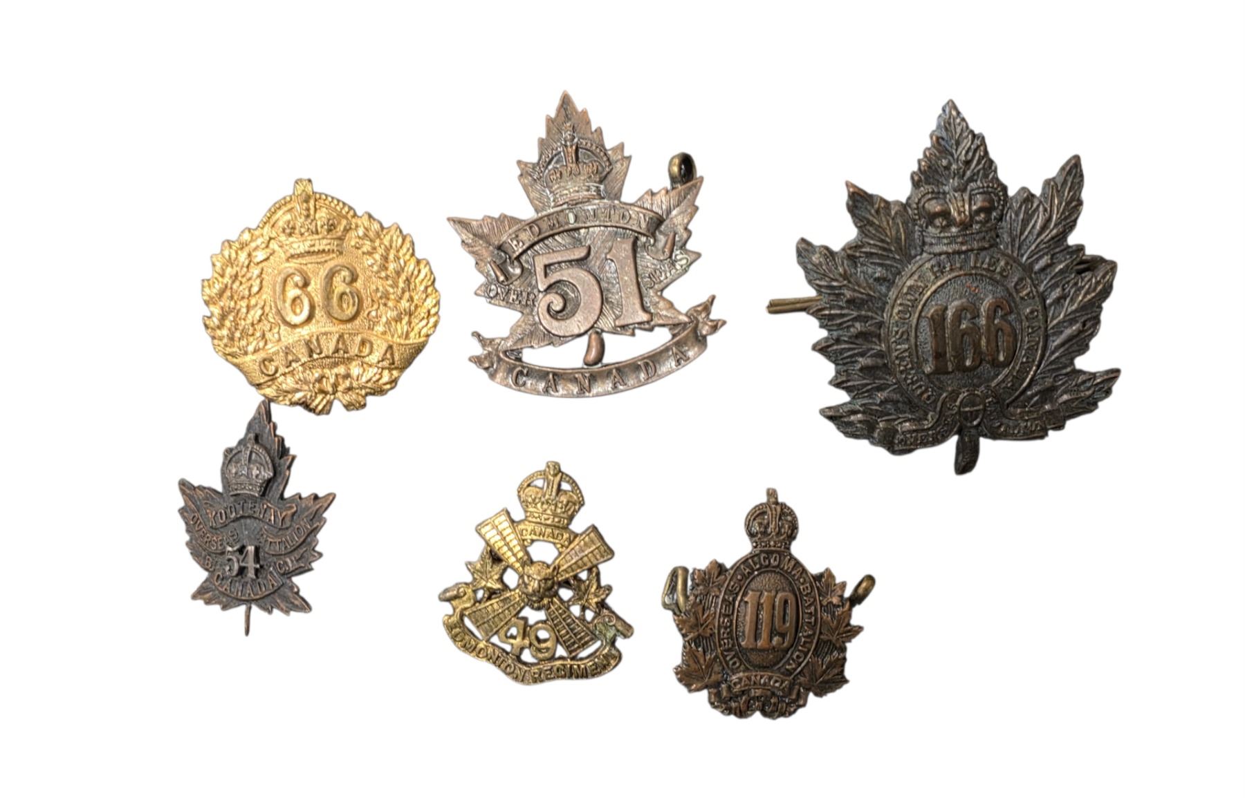 Group of 6 Vintage WWI/WW2 Assorted Canadian Military Regiments - Cap Badges