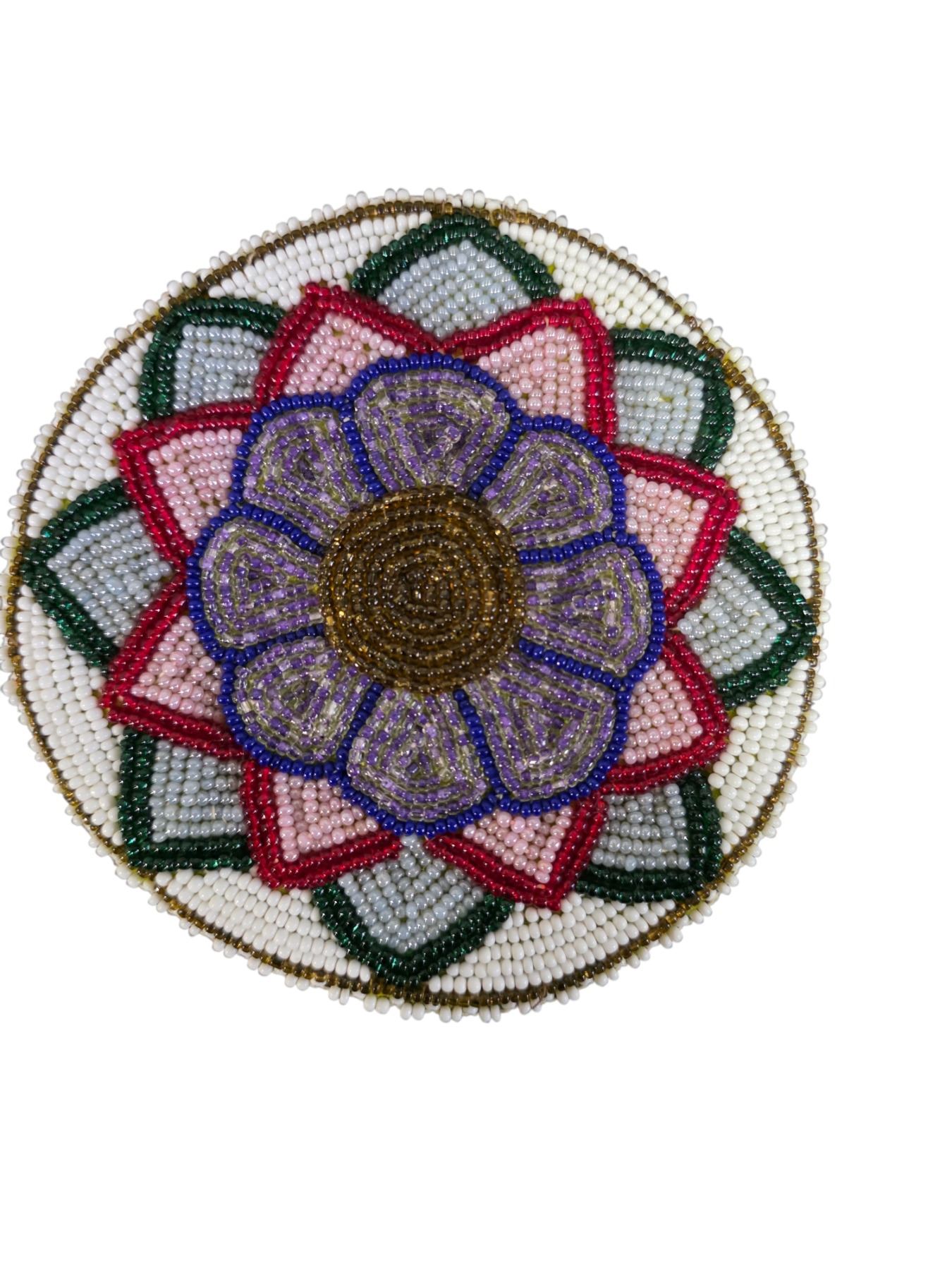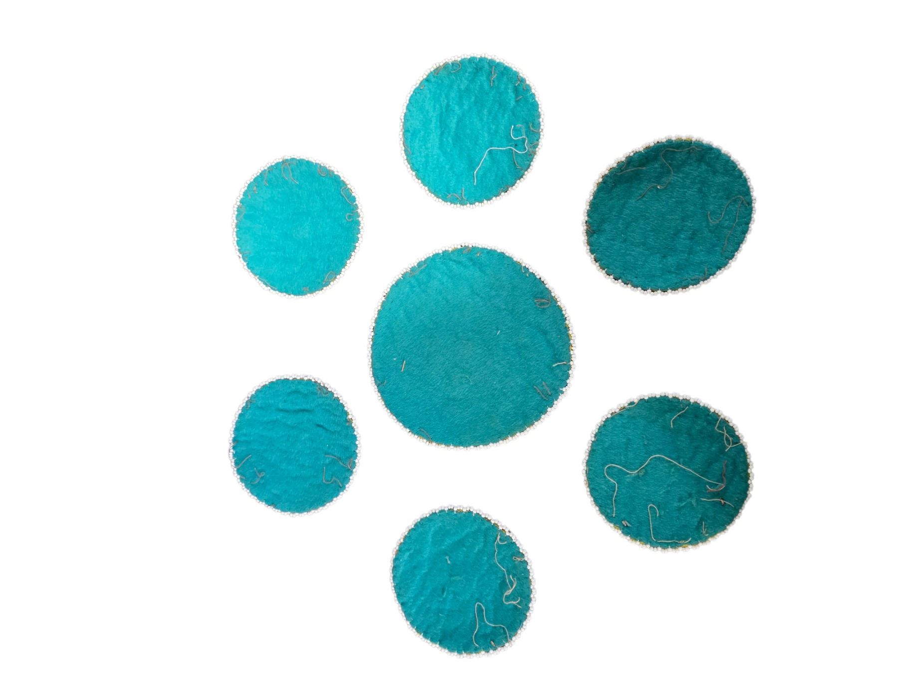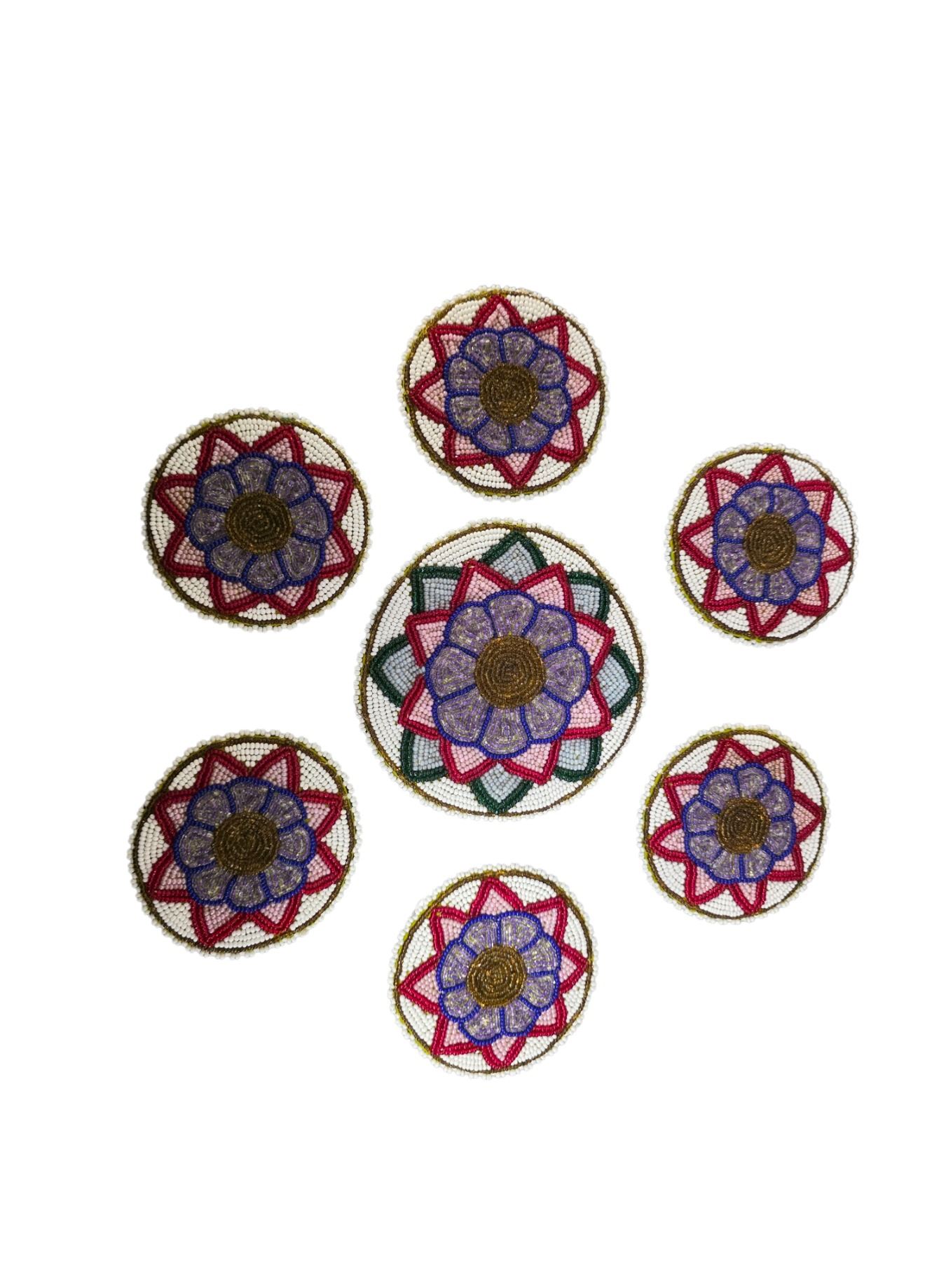 Group of 7 Vintage Hand-Beaded Floral Coasters