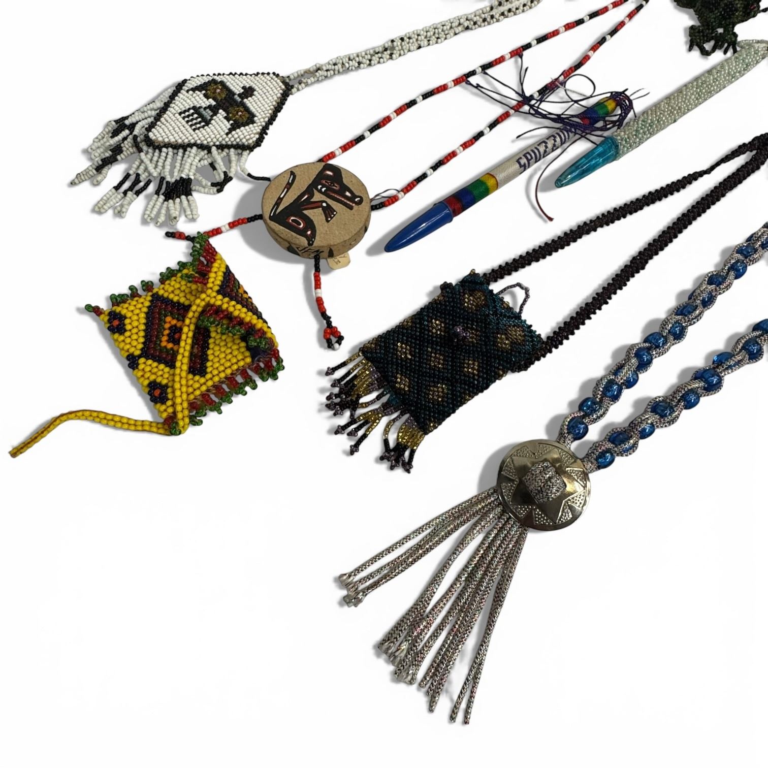Group of 8 Beaded First Nations Design Ties, Necklaces, Pens & Keepsakes