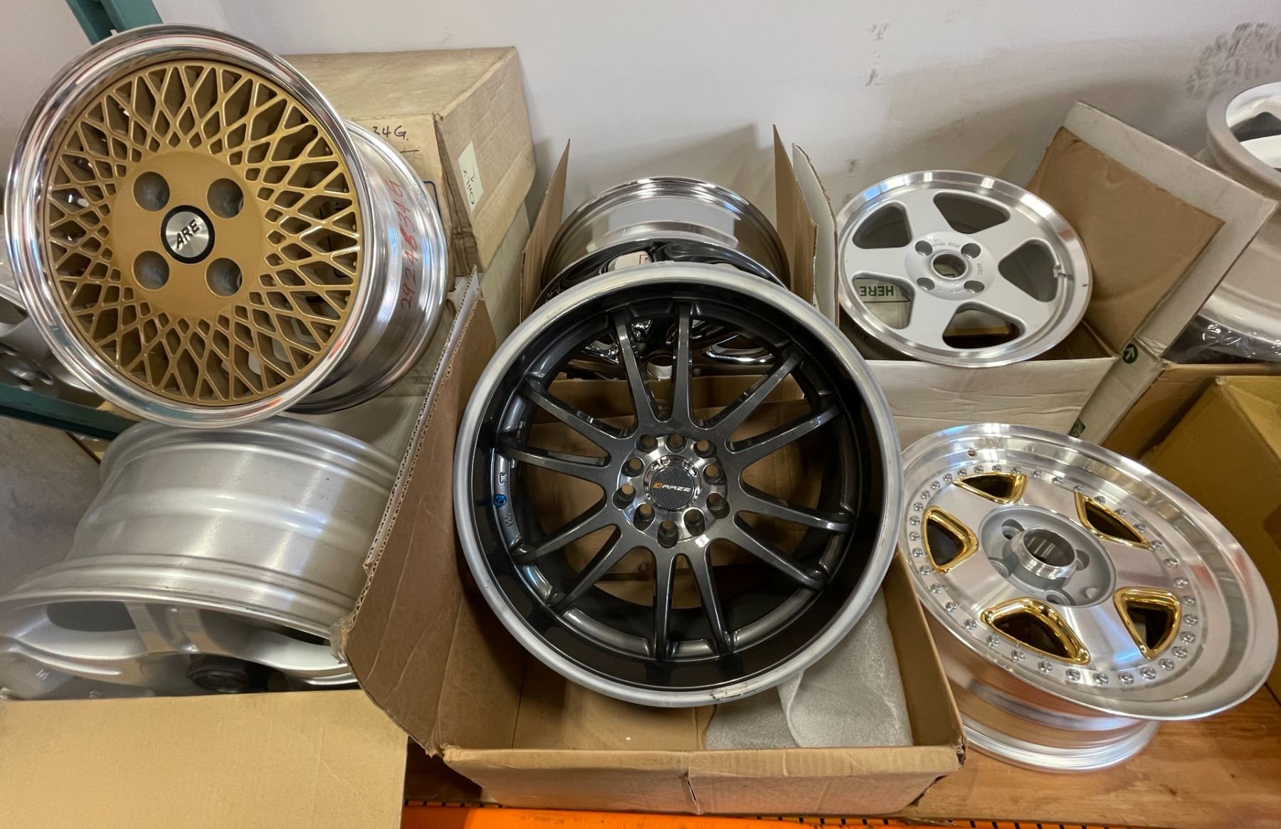 Group of 8 assorted single wheels rim - includes racing wheels / Raze / American racing wheels etc