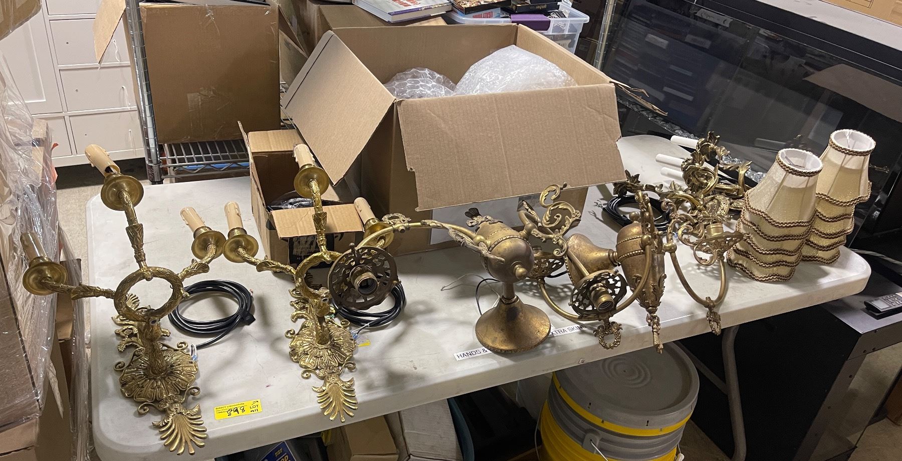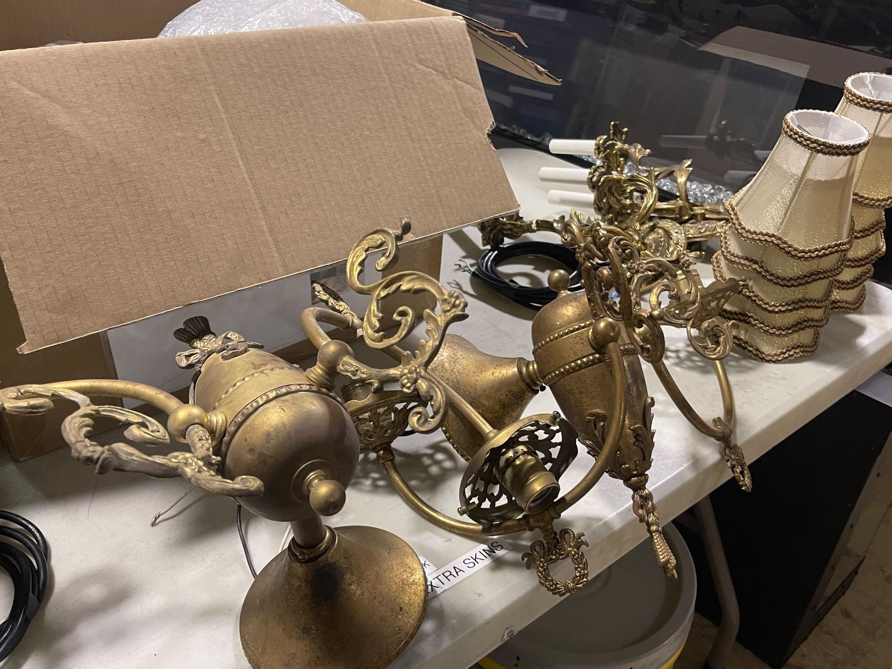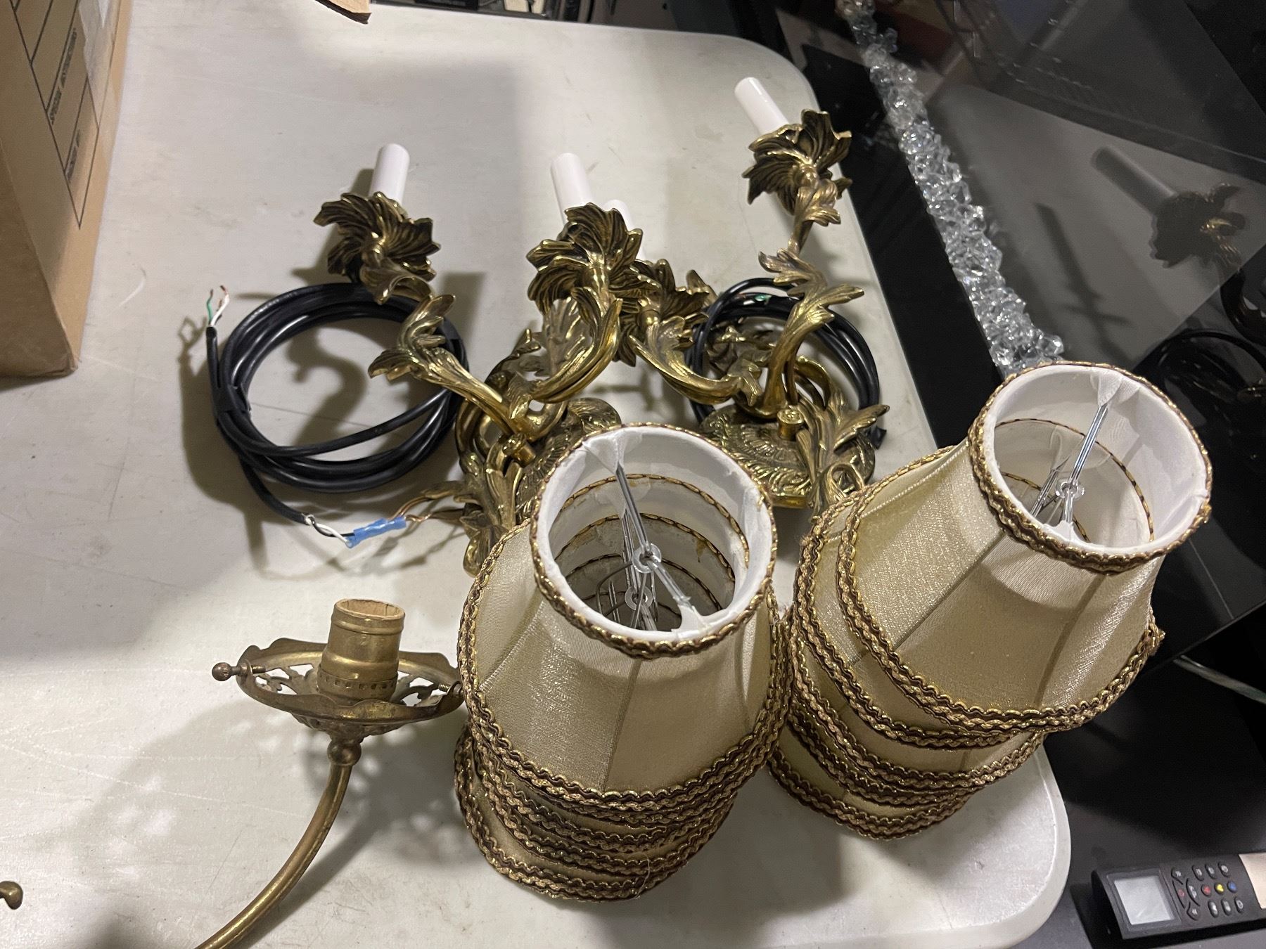 Group of Antique-Style Brass Candle Wall Sconce Light Fixtures