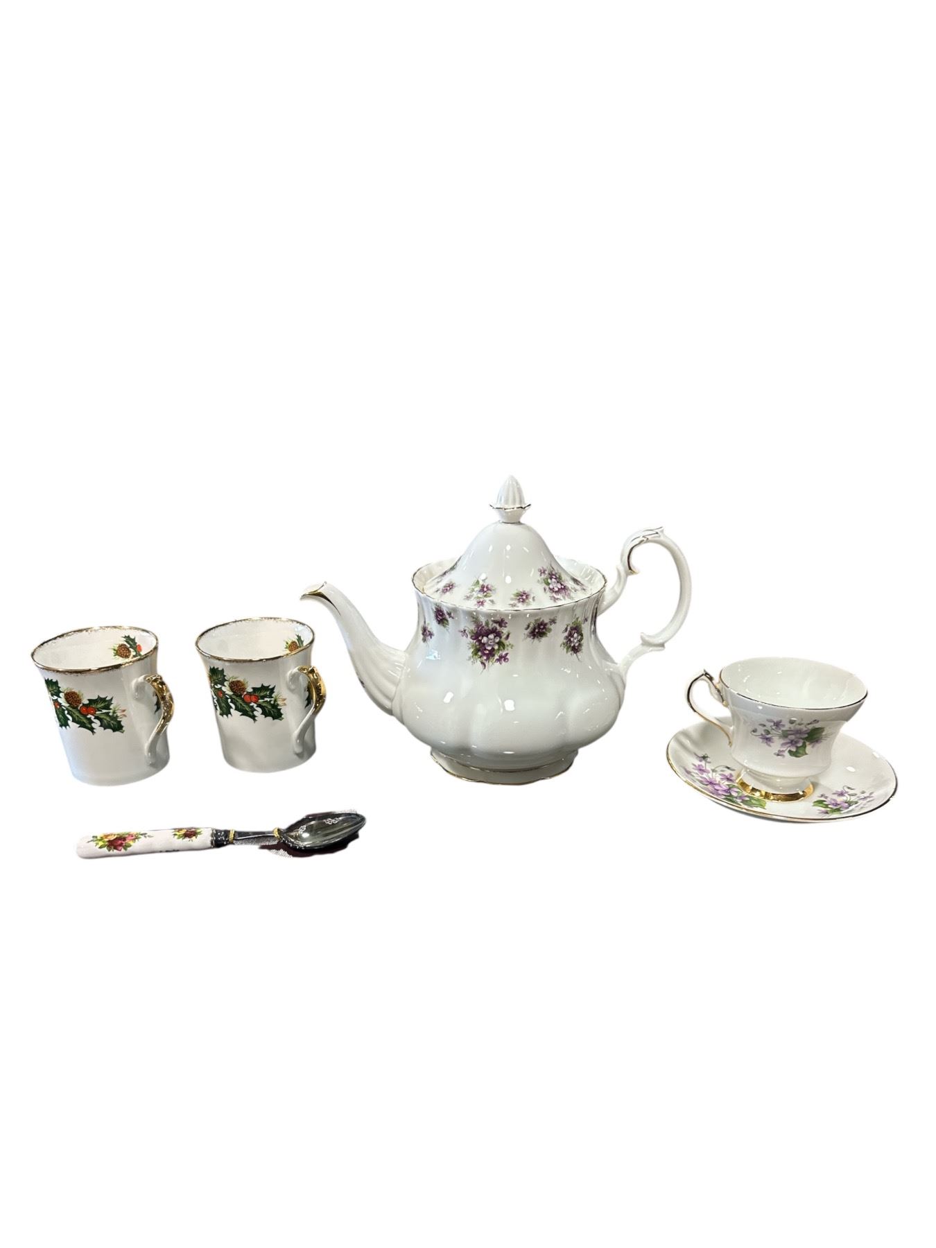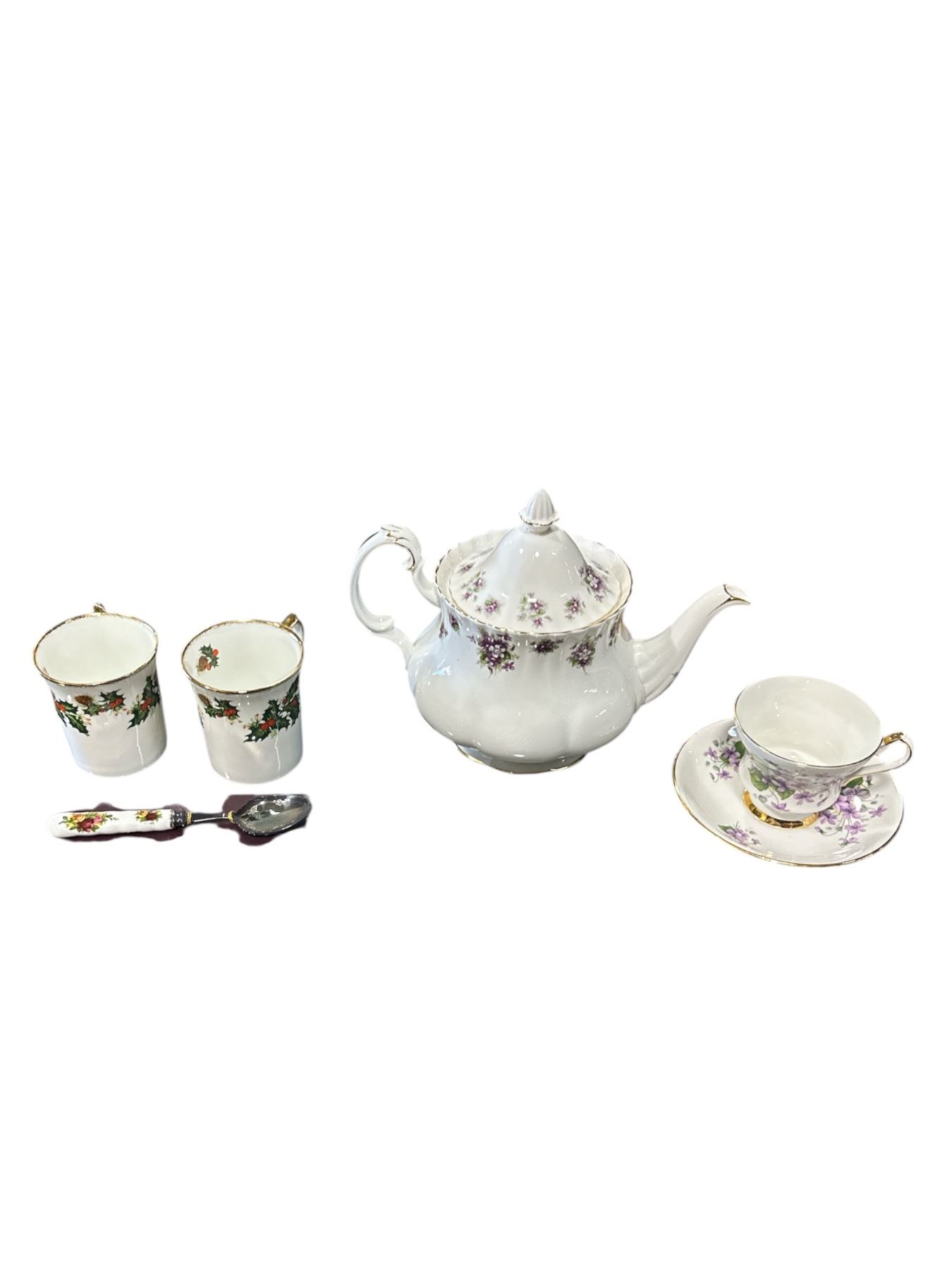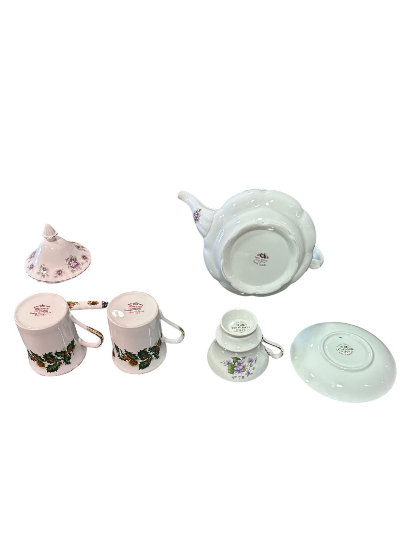 Group of Assorted China (Royal Albert Tea Kettle, Windsor Cup and Dish, 2x Windsor Cups)