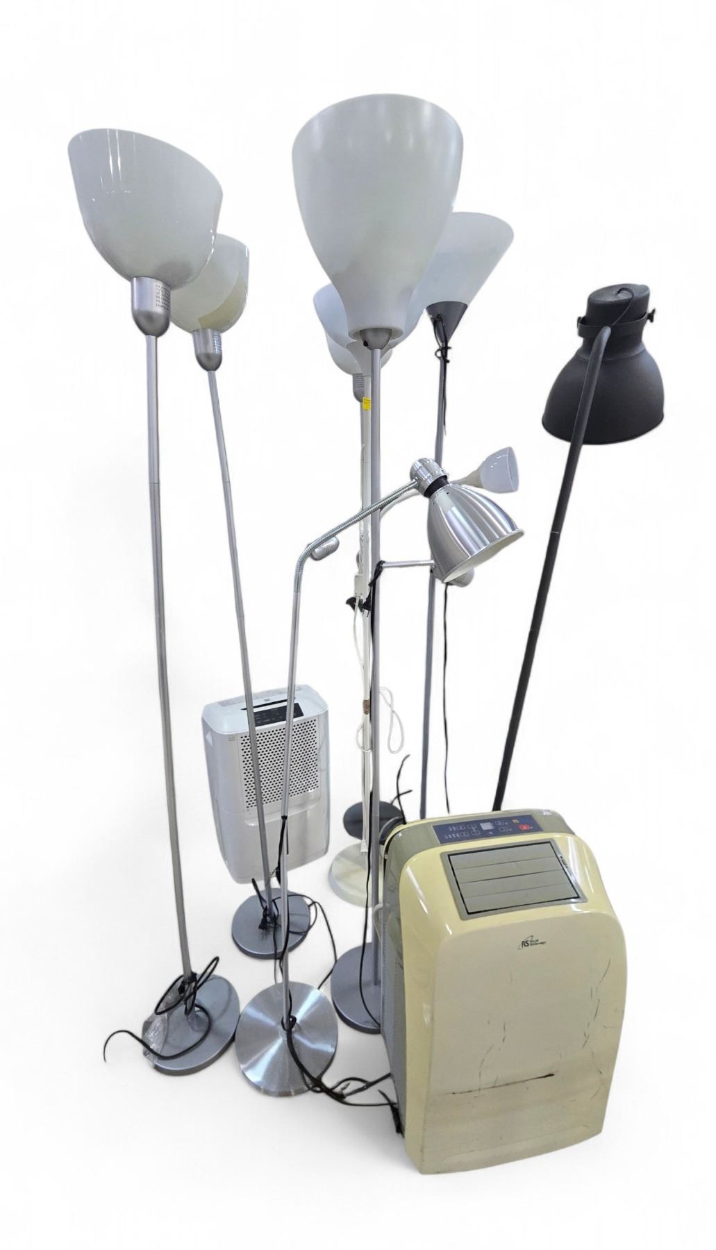 Group of Assorted Floor Lamps & x2 AC Units (Used - Not Tested)