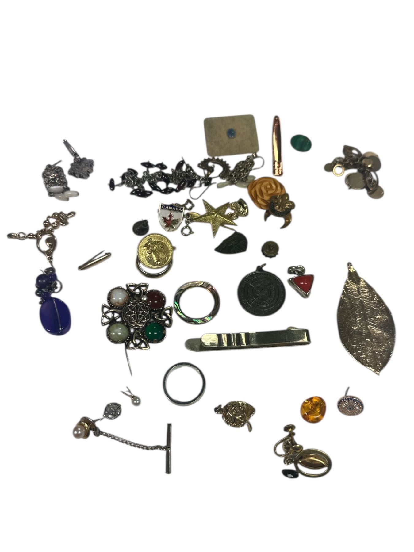 Group of Assorted Jewelry Pins, Earrings, Etc.