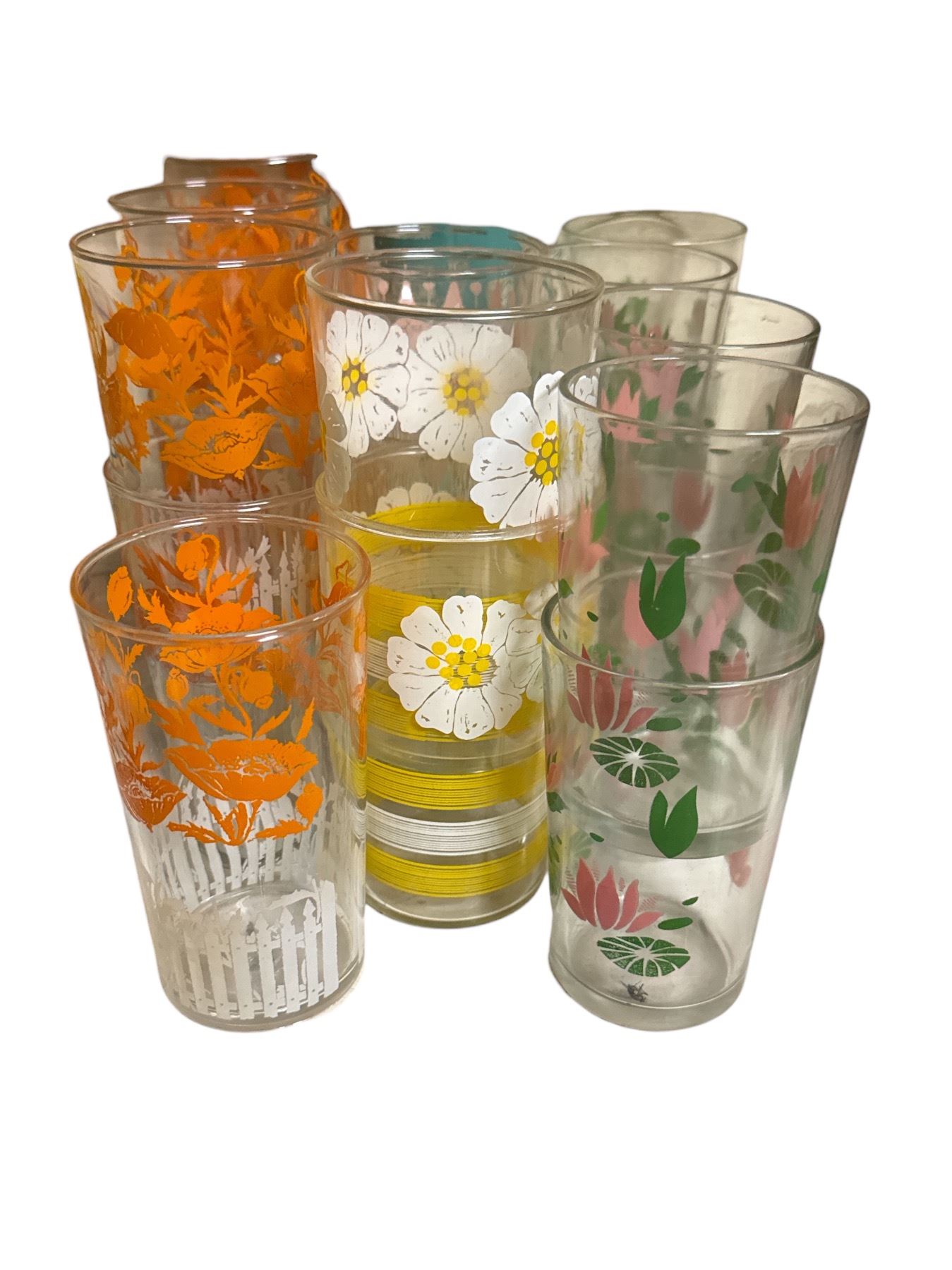 Group of Assorted Juice Glasses - Floral Design, Etc.