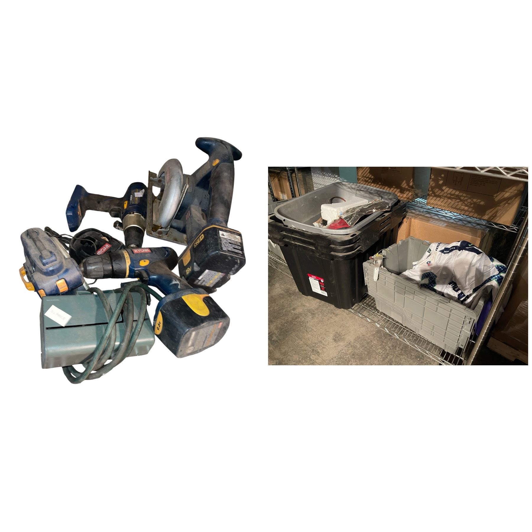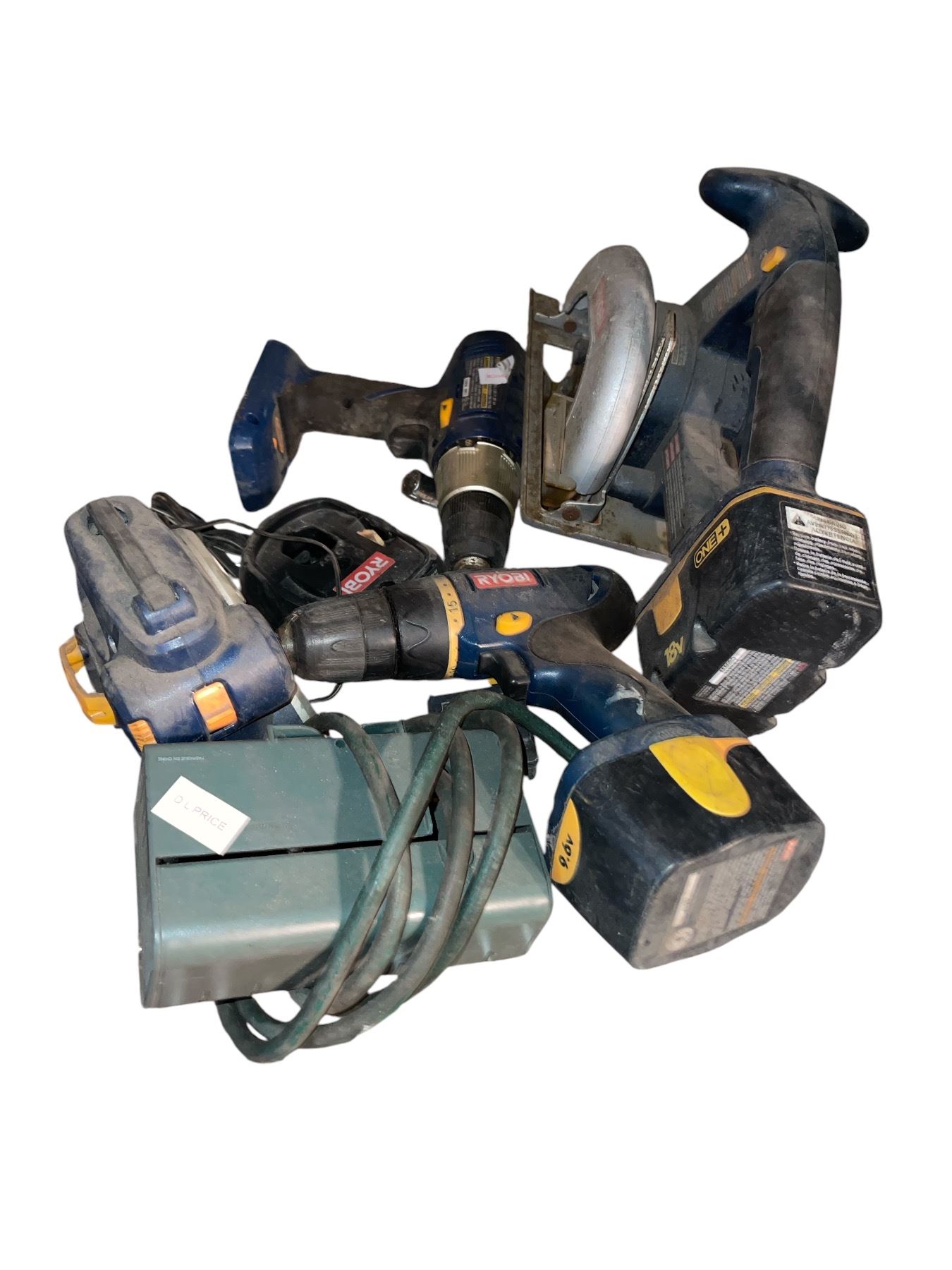 Group of Assorted RYOBI Power Tools - Includes Cordless Drill, Circular Saw, Chargers etc