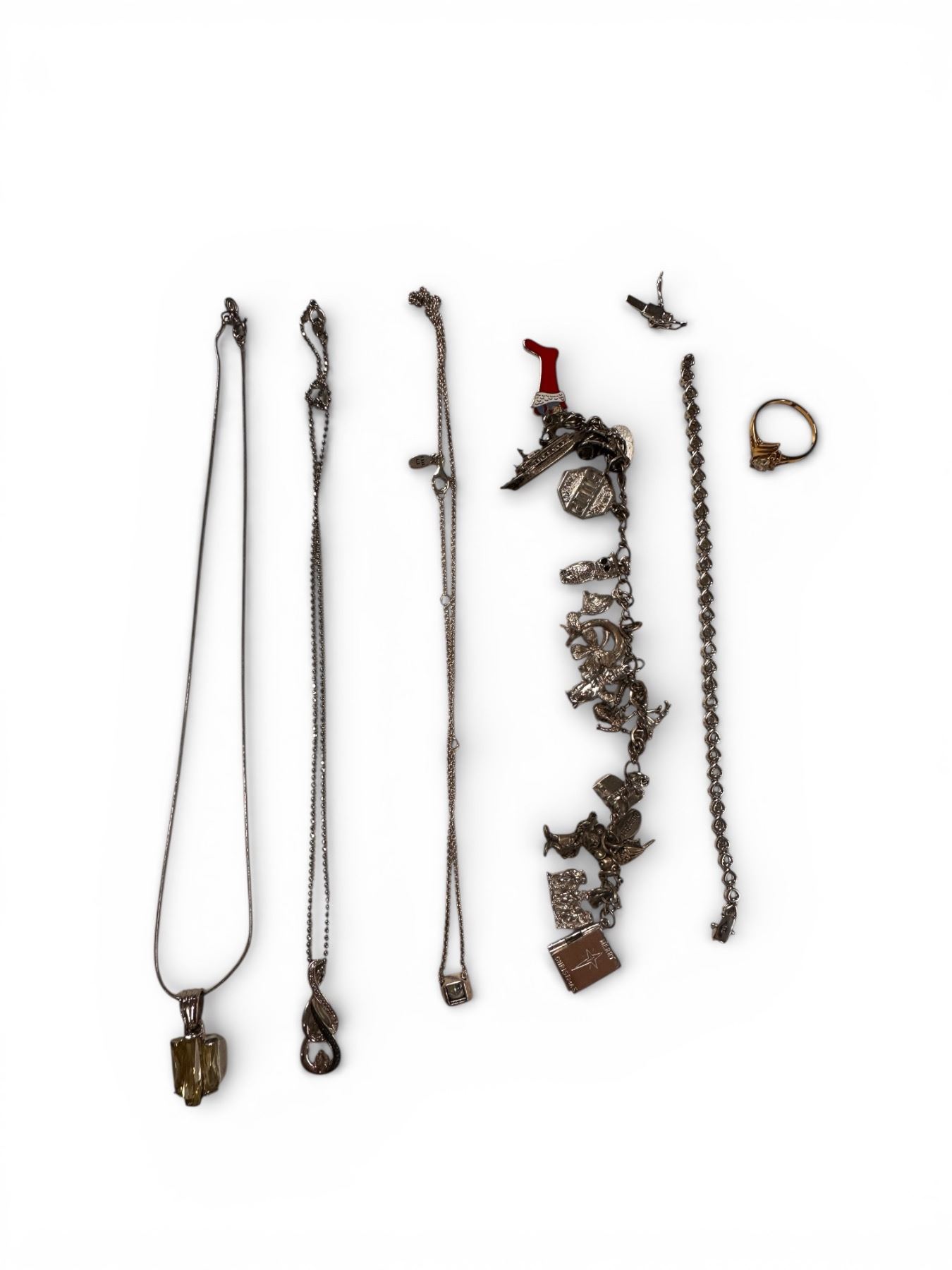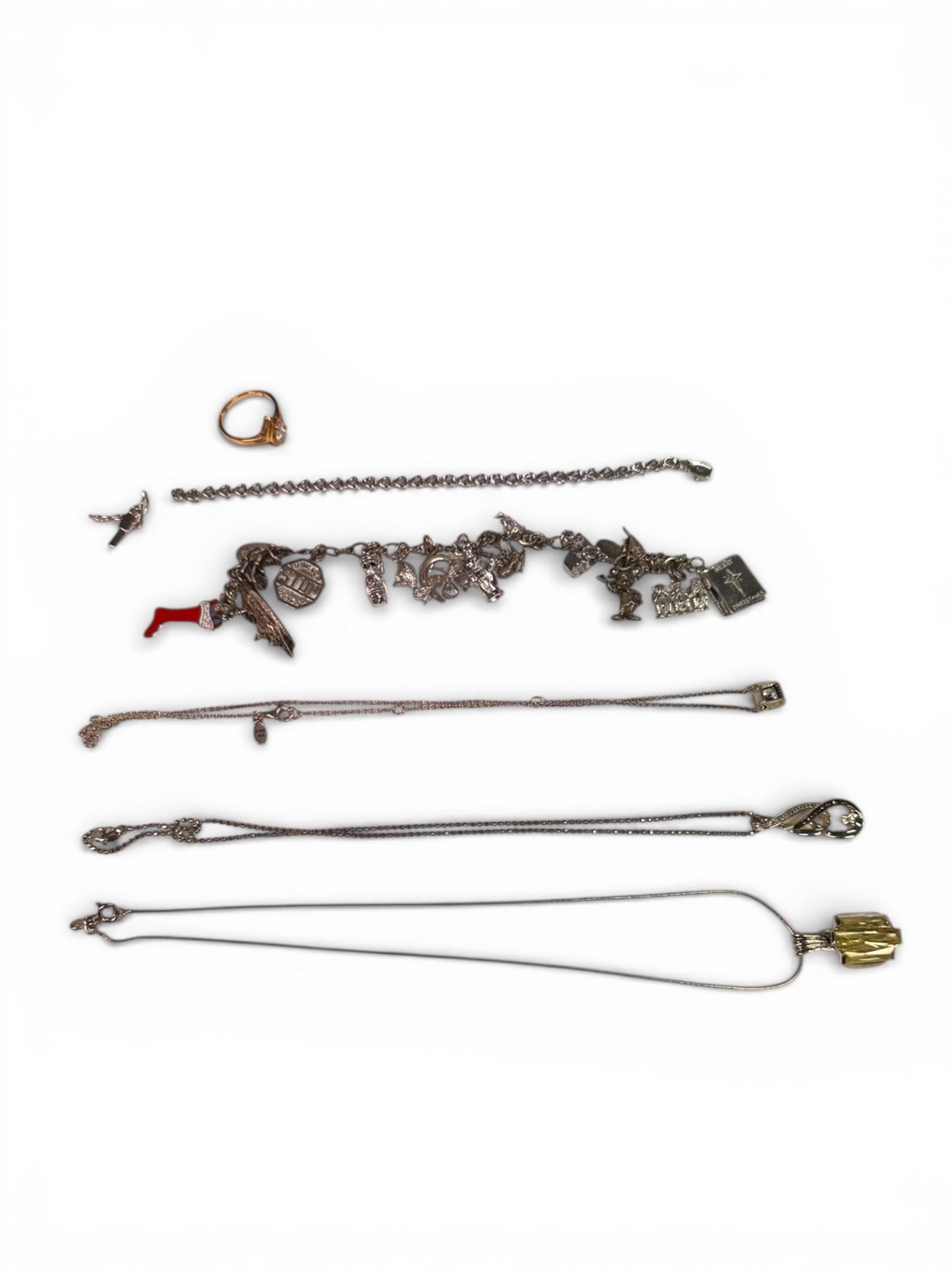 Group of Assorted Silver Necklaces, Bracelet & Ring 62.8 Grams