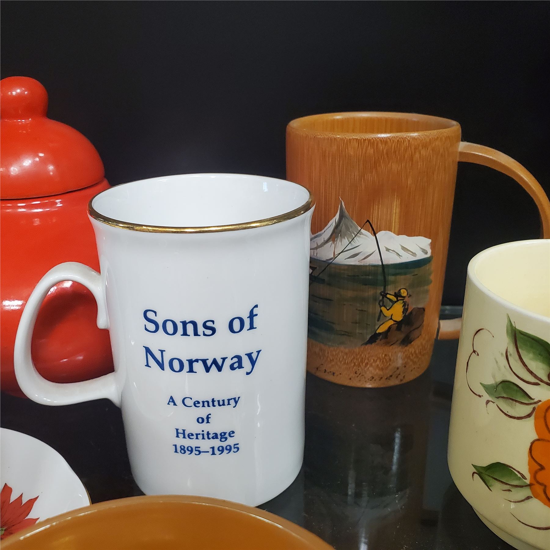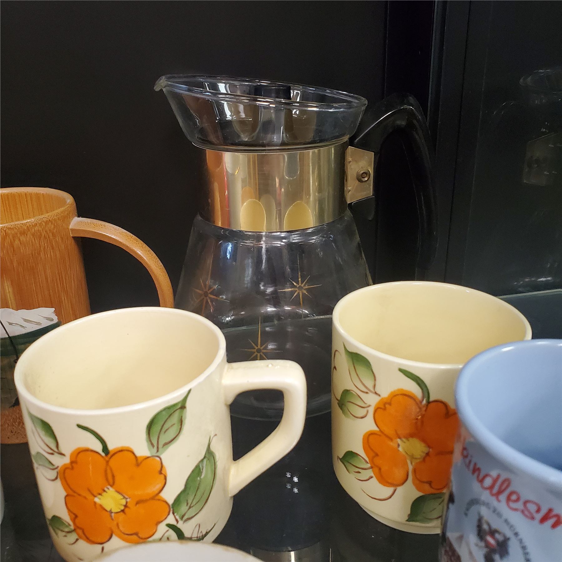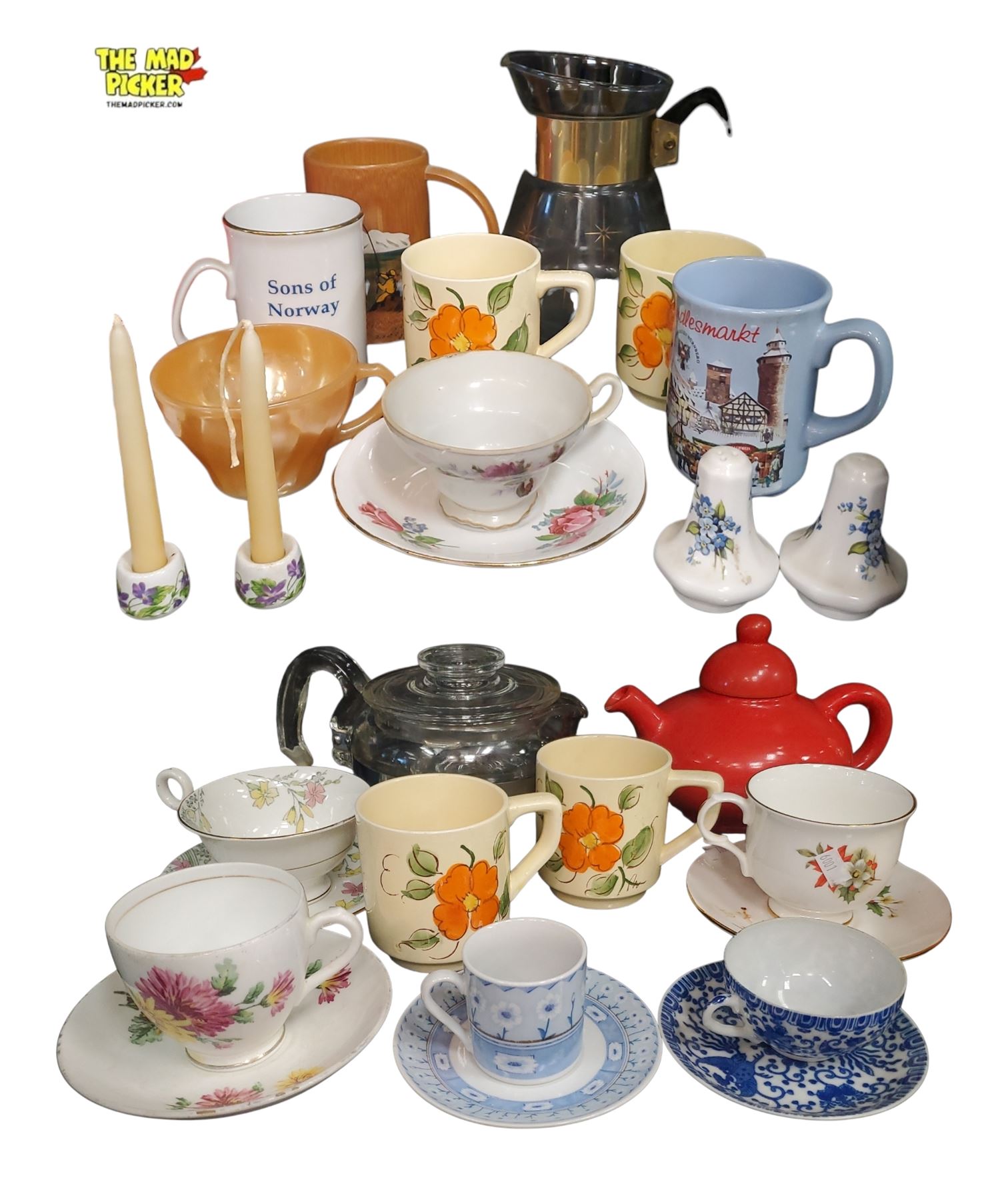 Group of assorted vintage cups, saucers, pots etc.