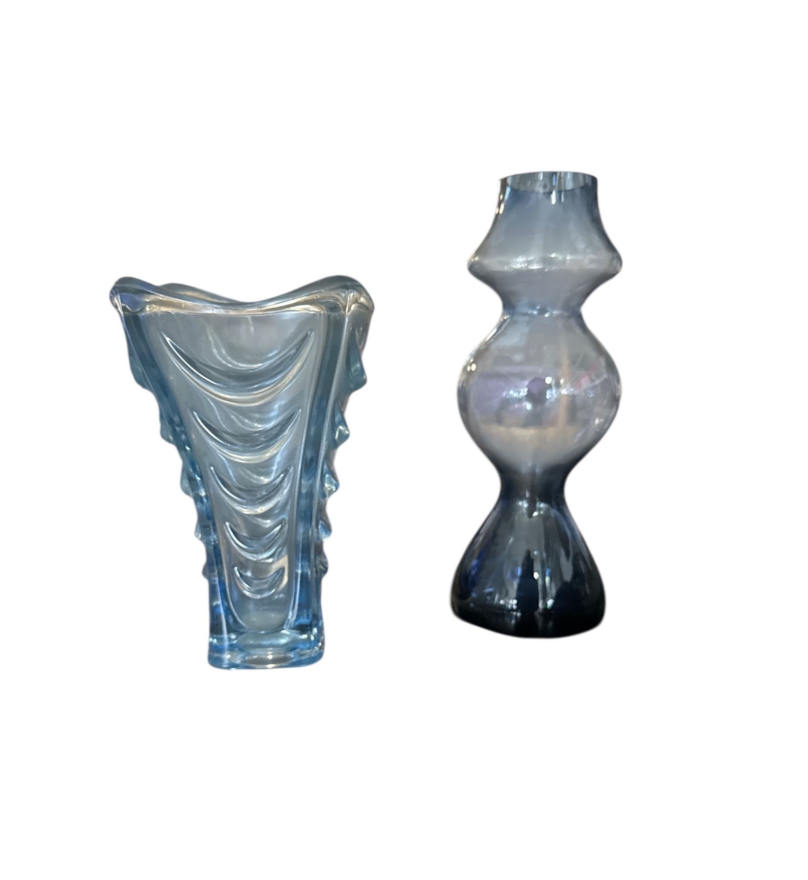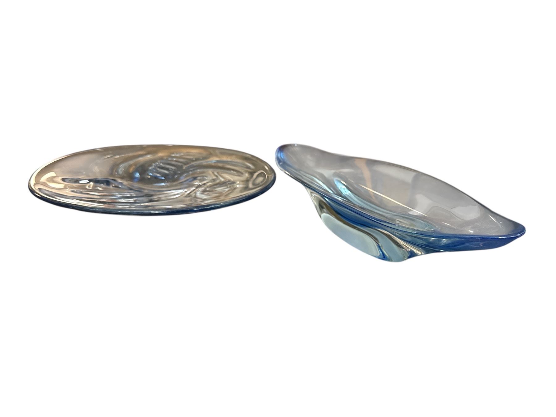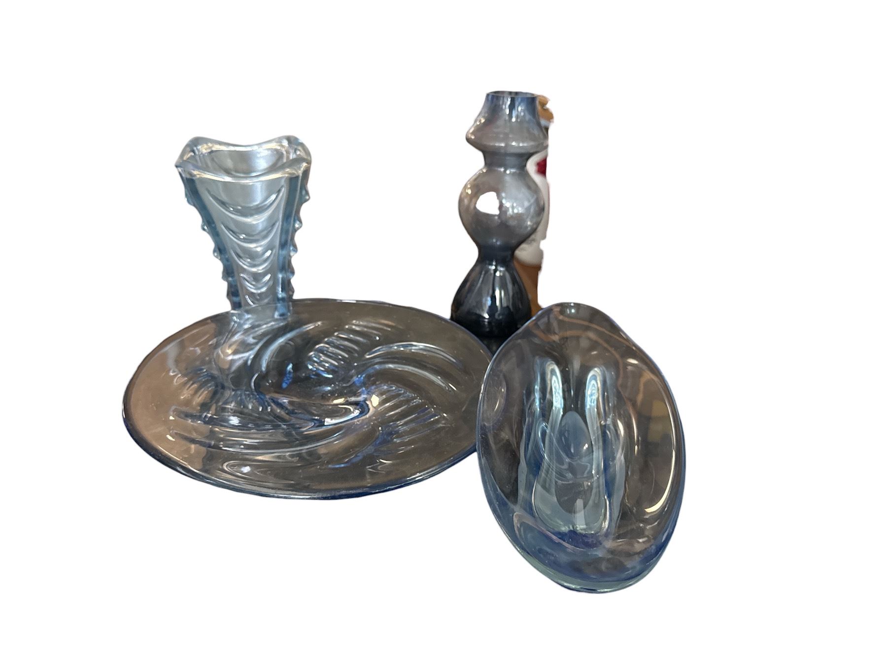 Group of Blue Glass Pieces - Tray, Vase, Etc.