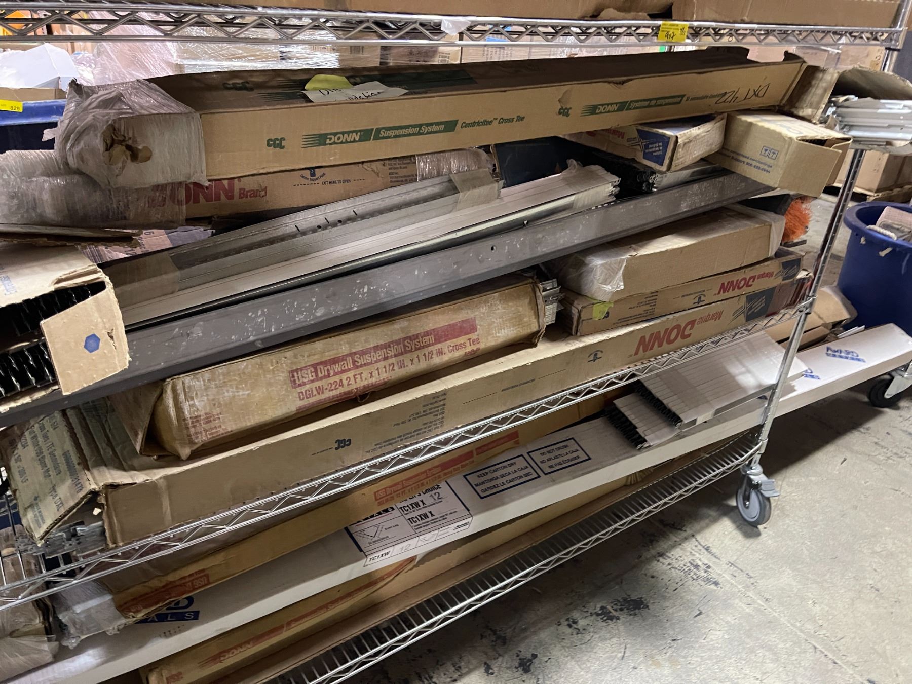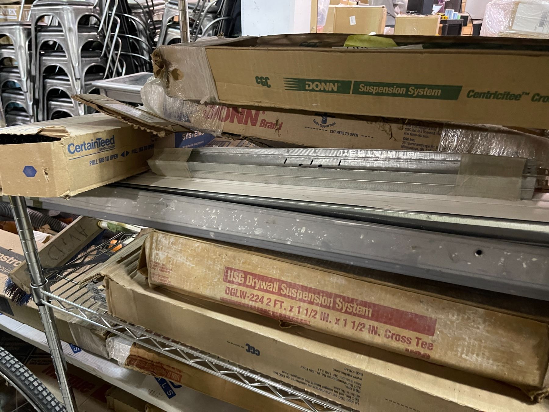 Group of Drop Ceiling Grid, Cross Tee, and Suspension System Components