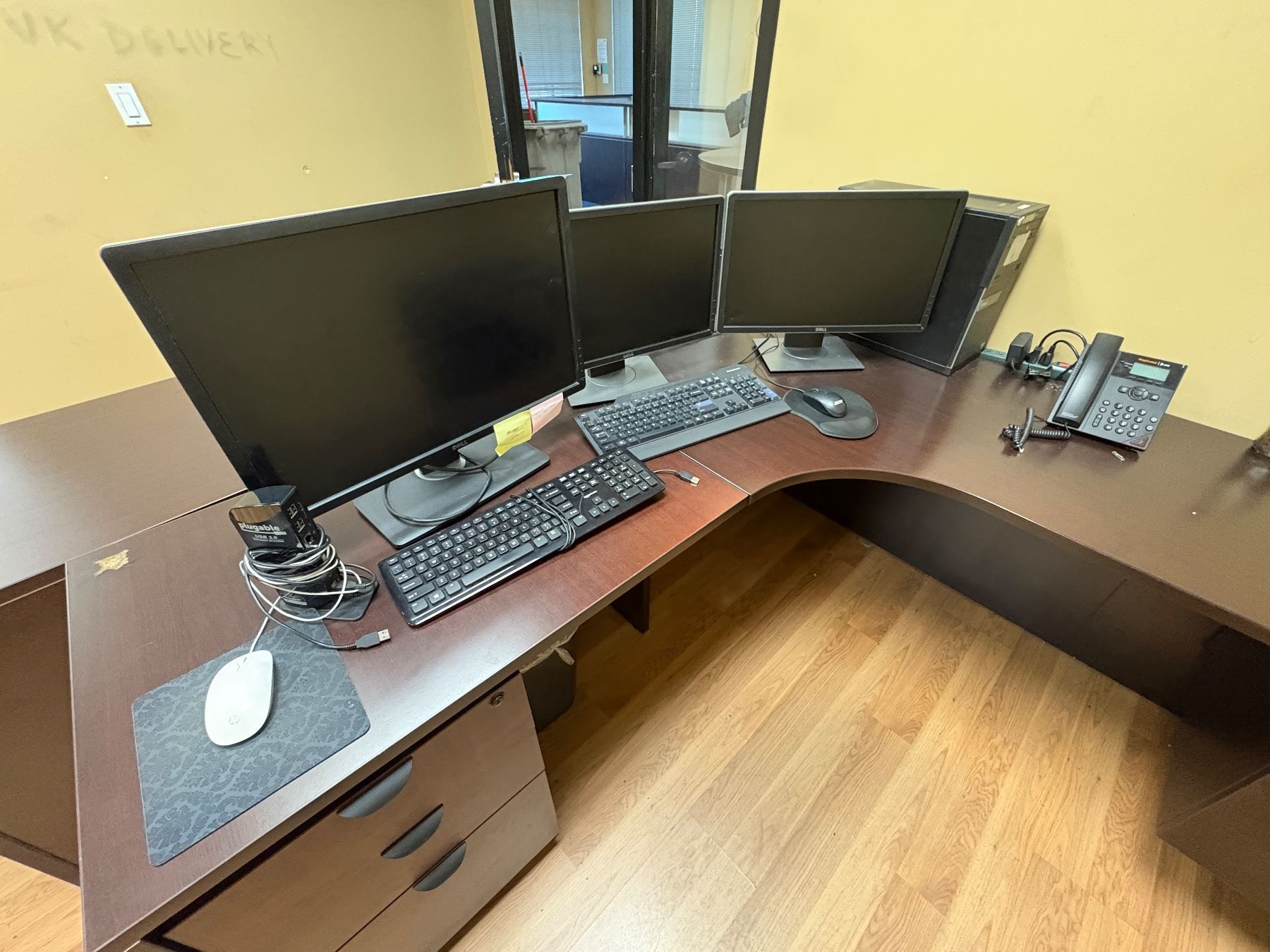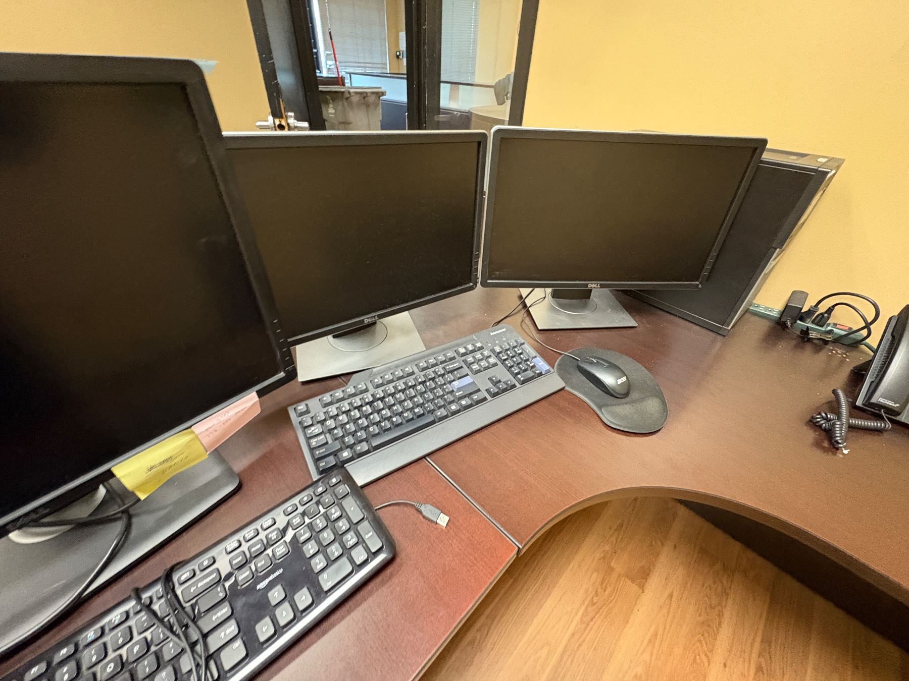 Group of Electronics - 3x Various Dell Monitors, Dell PC, Office Phone, Plugable USB 3.0 Docking Station, Etc.