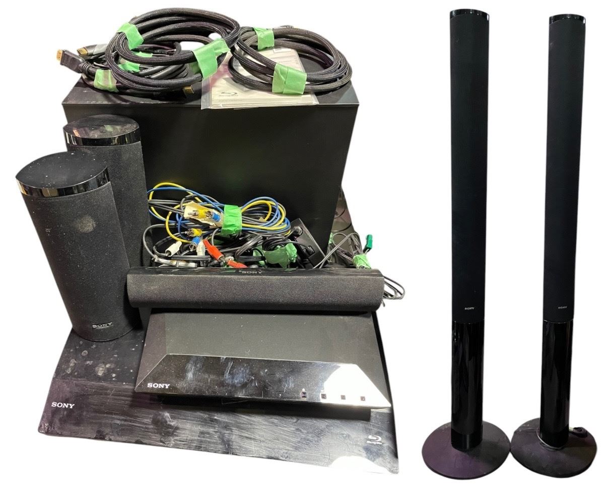 Group of Electronics - Sony Soundbars, Cords, Sony Blue Ray Disc Home Theatre System, Etc