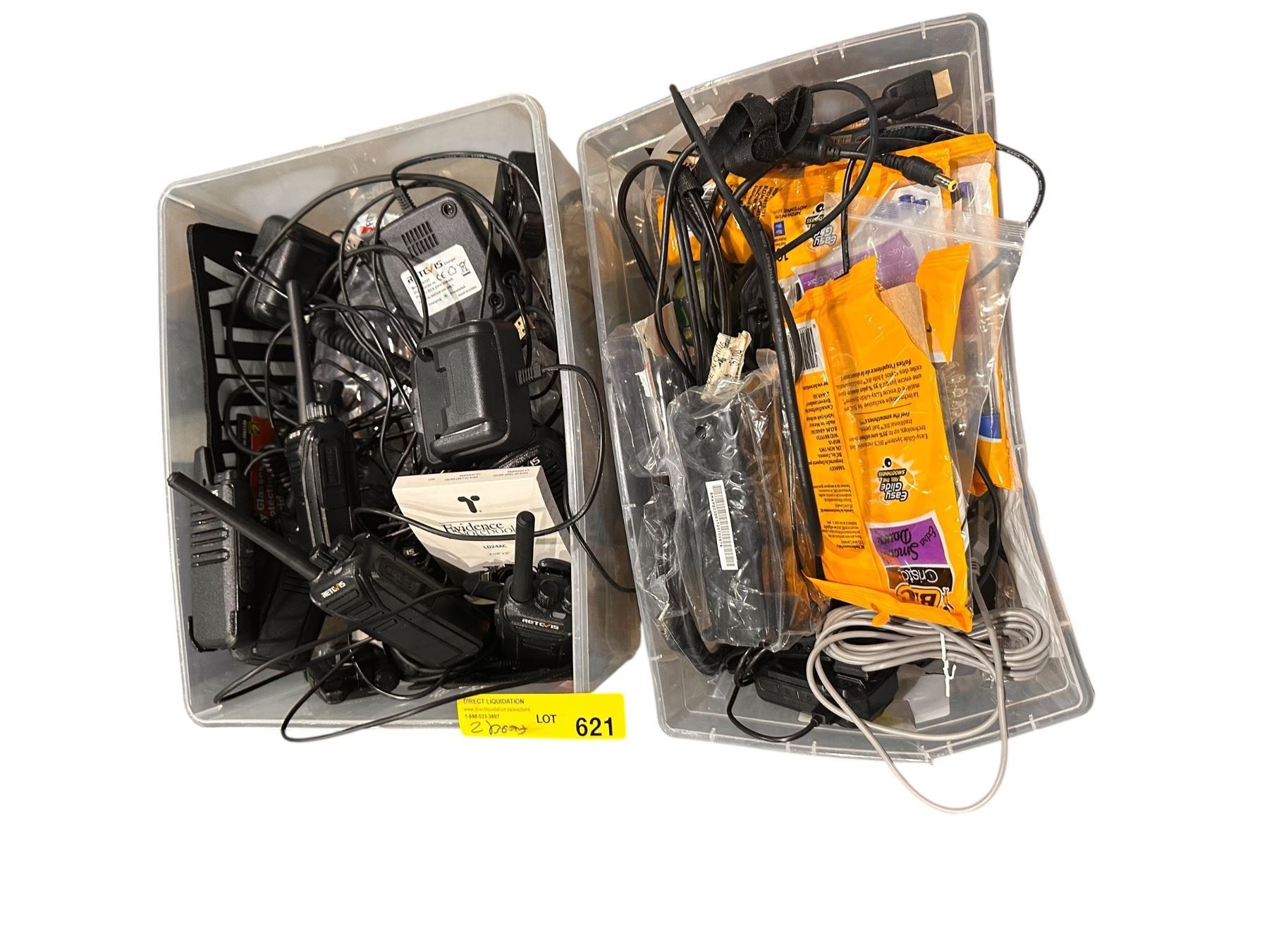 Group of Electronics - Walkie Talkies, Cables, Chargers, Pens, Etc.