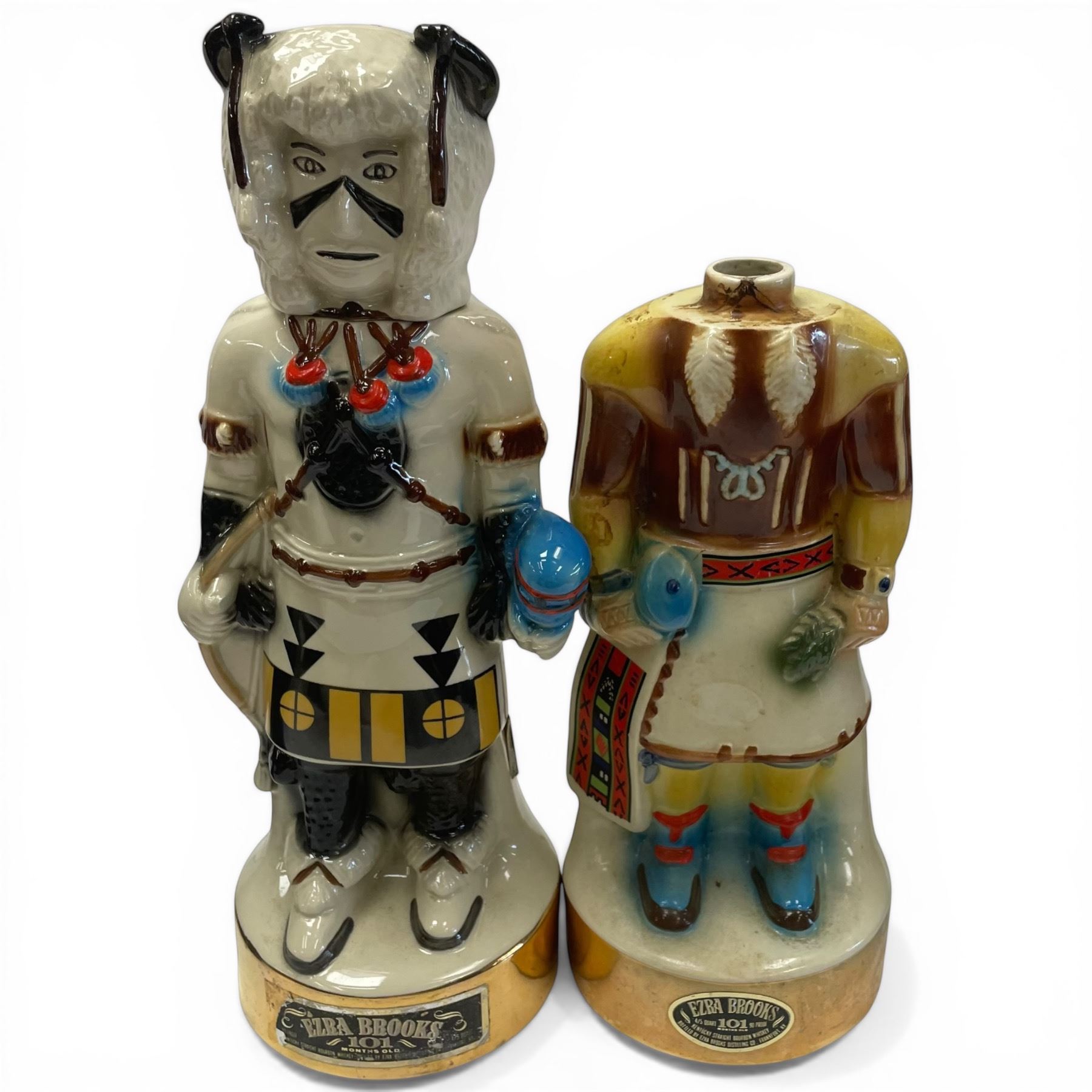 Group of Ezra Brooks Decanters, Pottery Jug, Leather Decanter & Hiram Walker Bottle (empty)