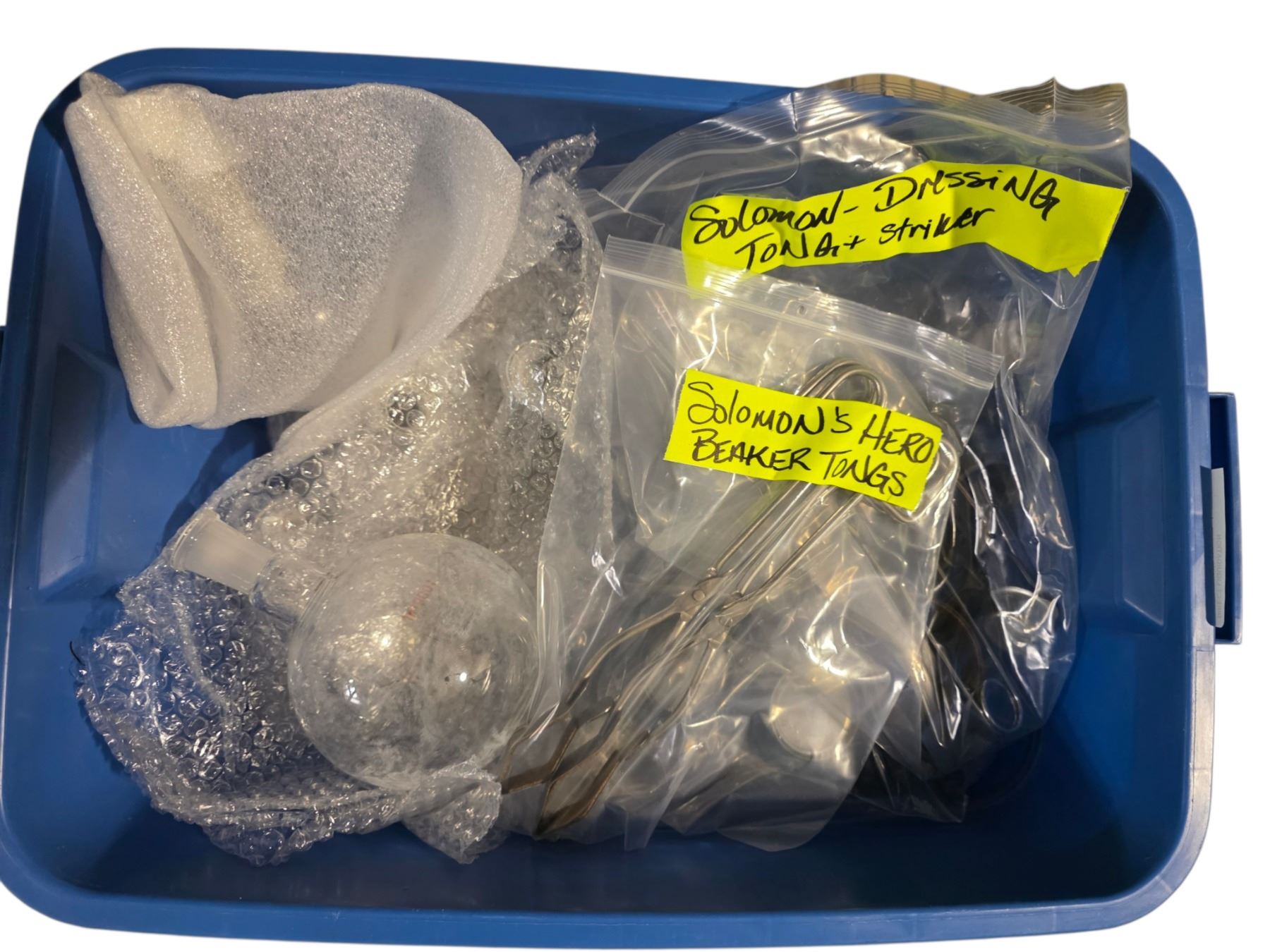Group of "Hero' Set Dec - Beakers for Tar Liquid, Tongs, and Strikers