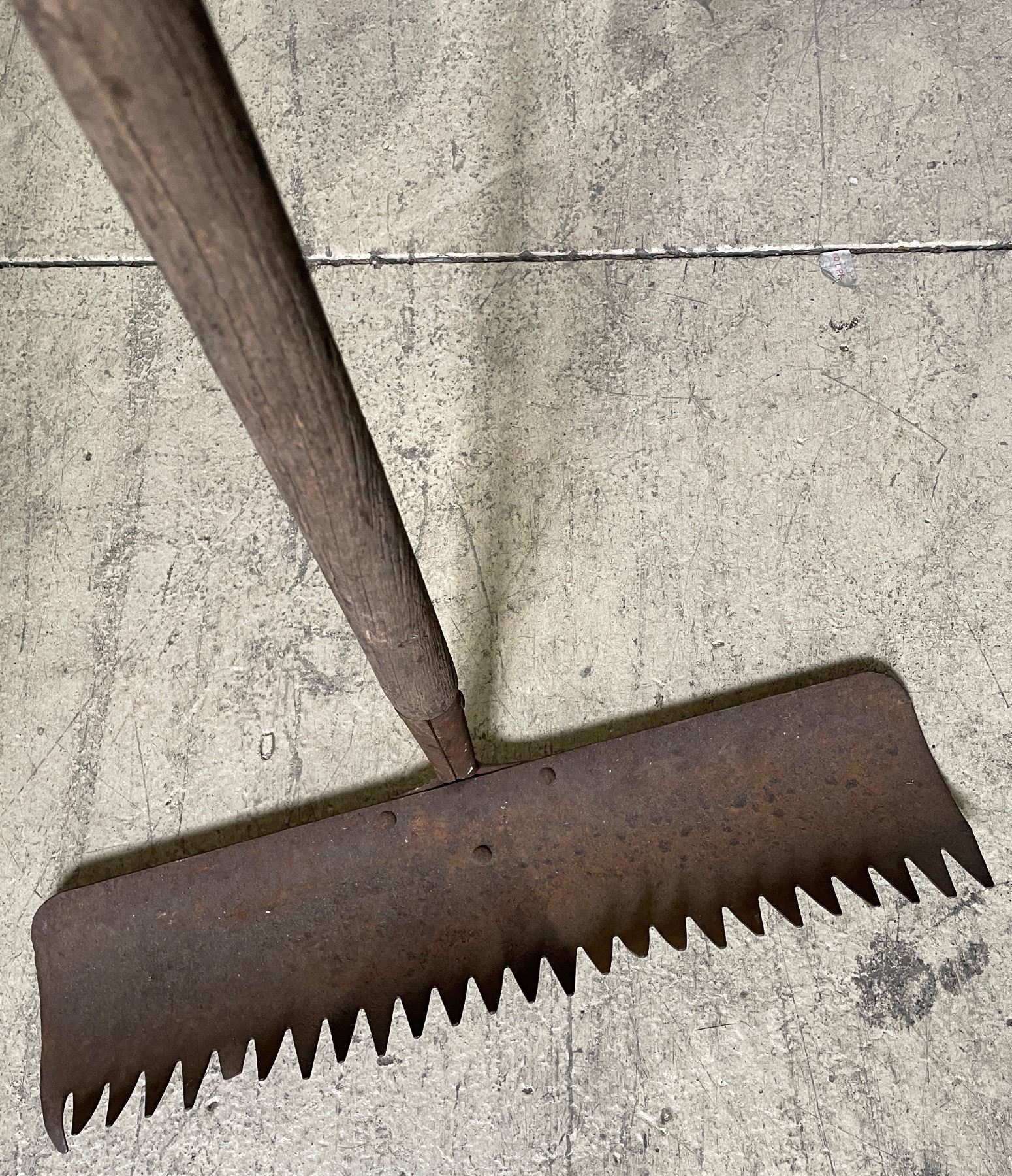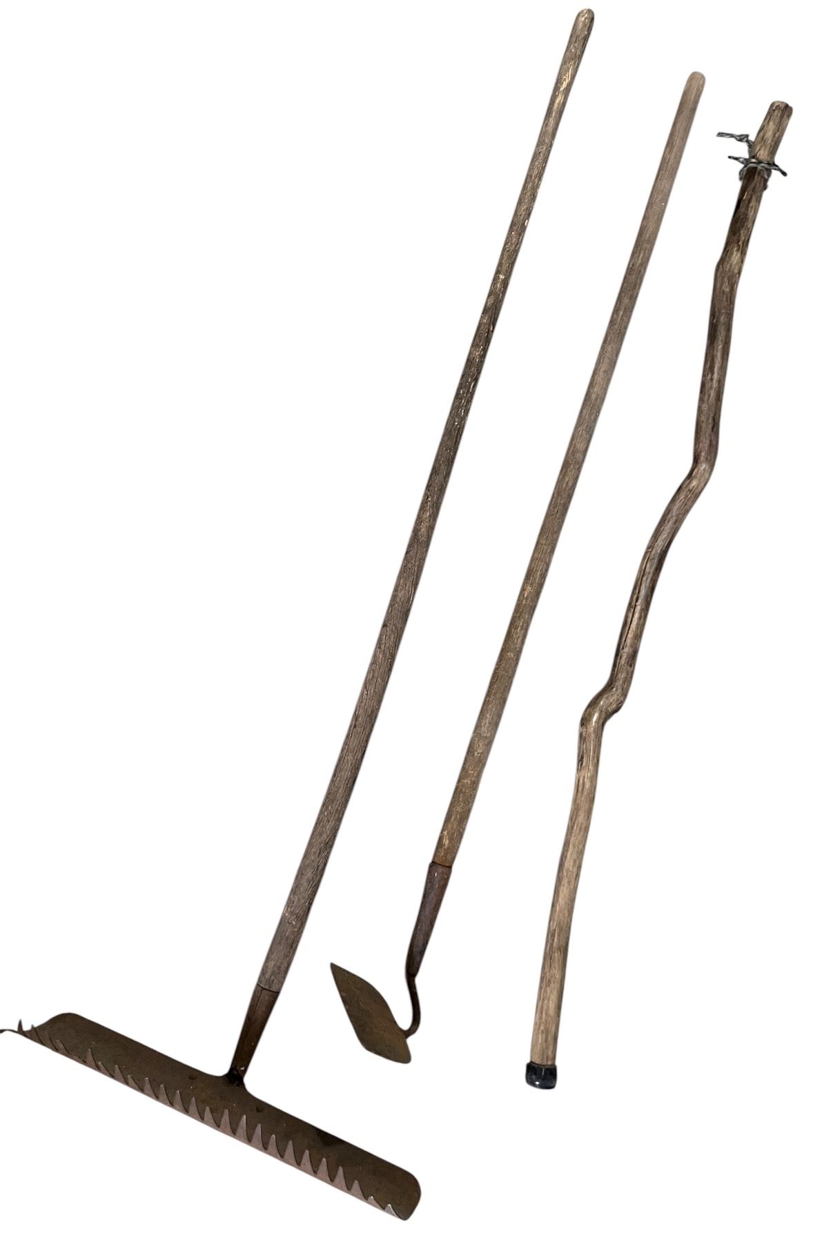 Group of Hoe, Rake & Walking Stick