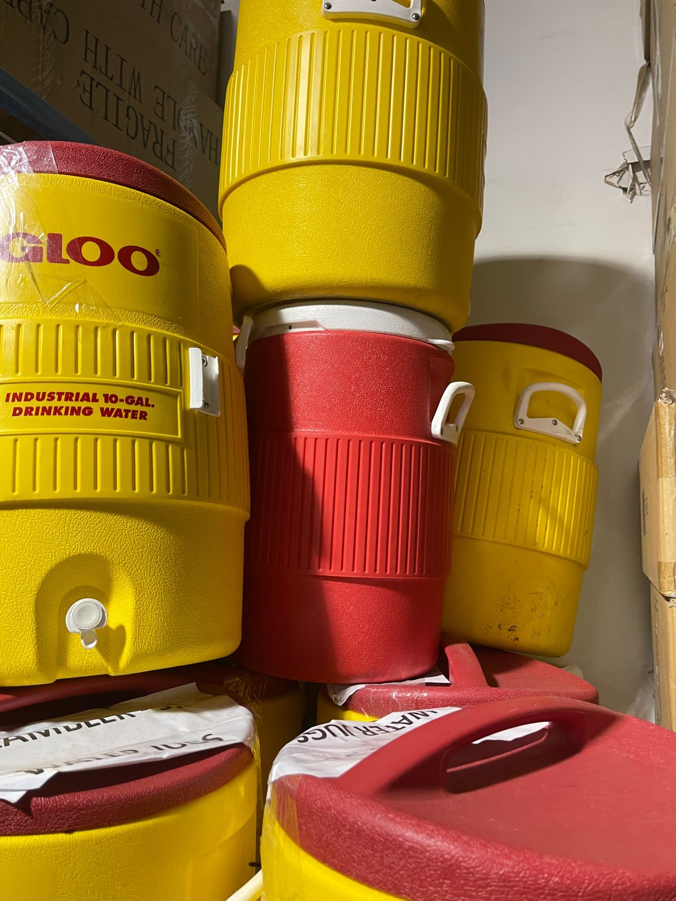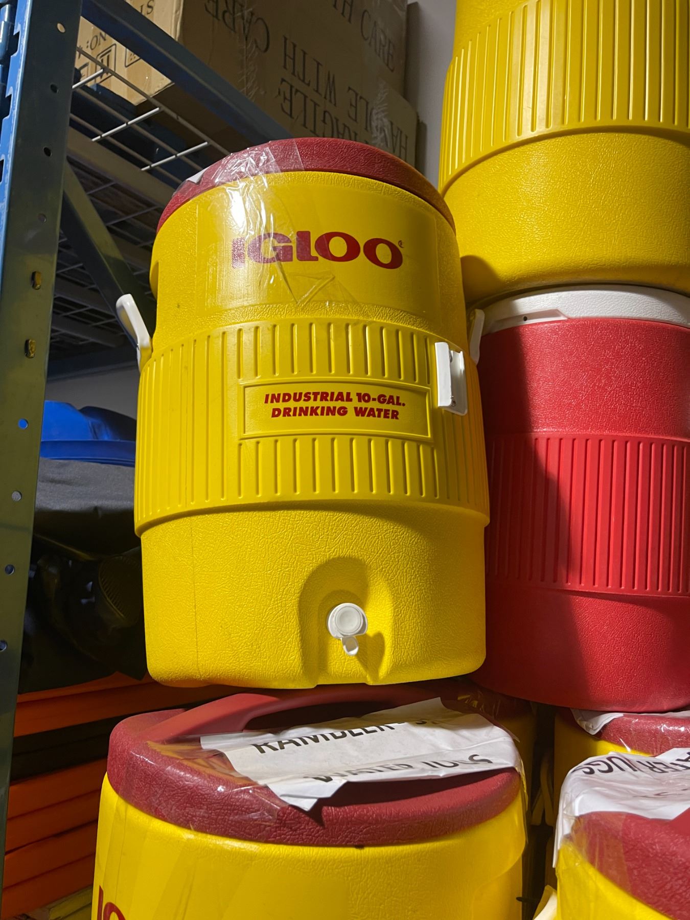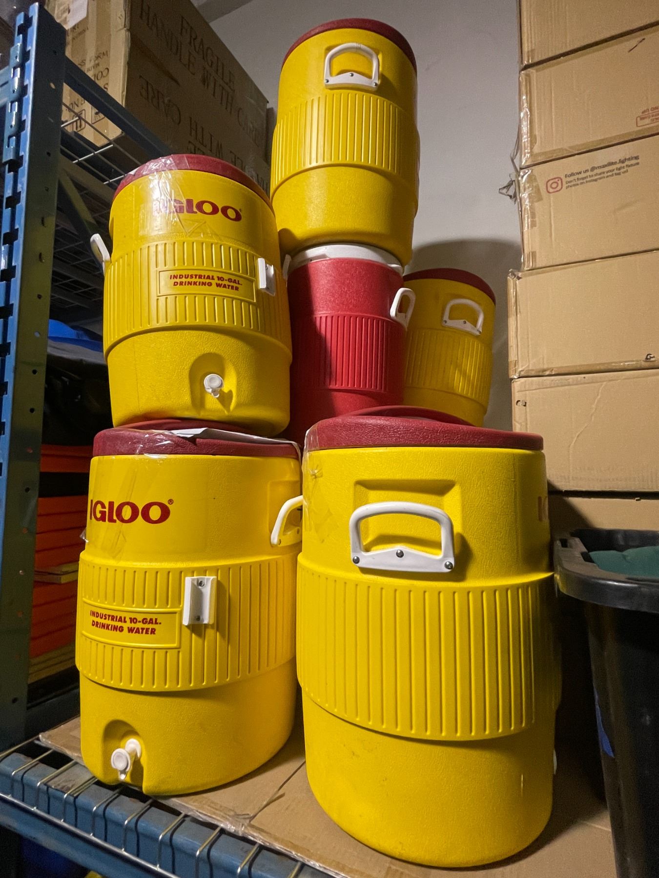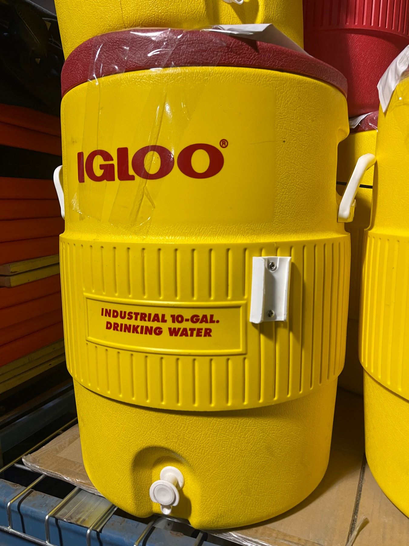Group of Igloo Industrial 10-Gallon Drinking Water Coolers