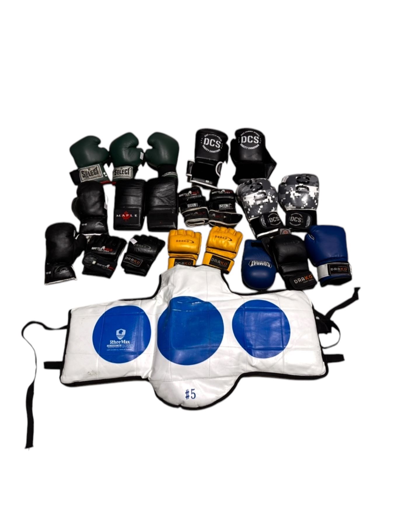 Group of Martial Art Training Gear (Chest Pad - Boxing Gloves - MMA Gloves)
