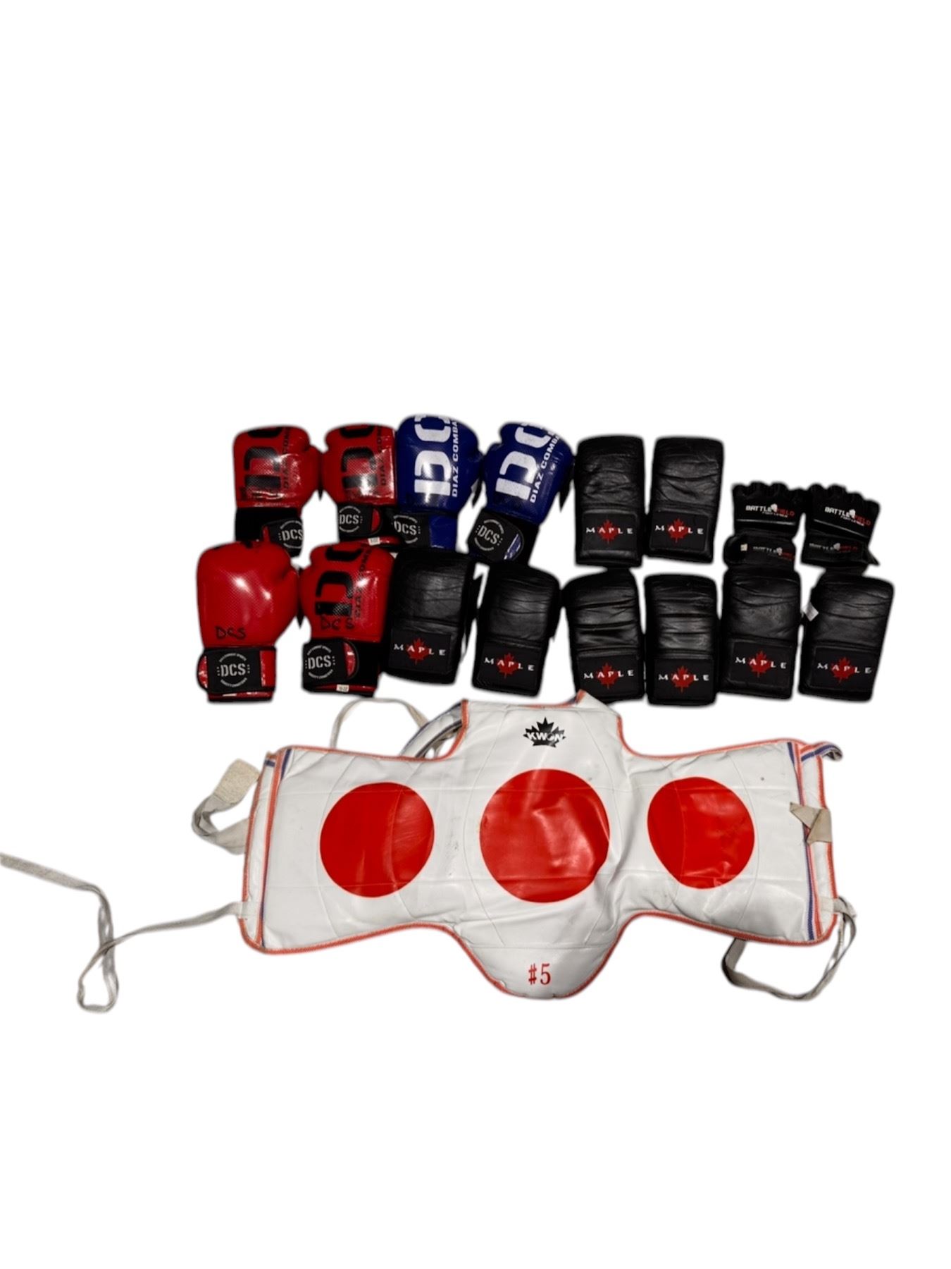 Group of Martial Art Training Gear (Chest Pad - Boxing Gloves - MMA Gloves)