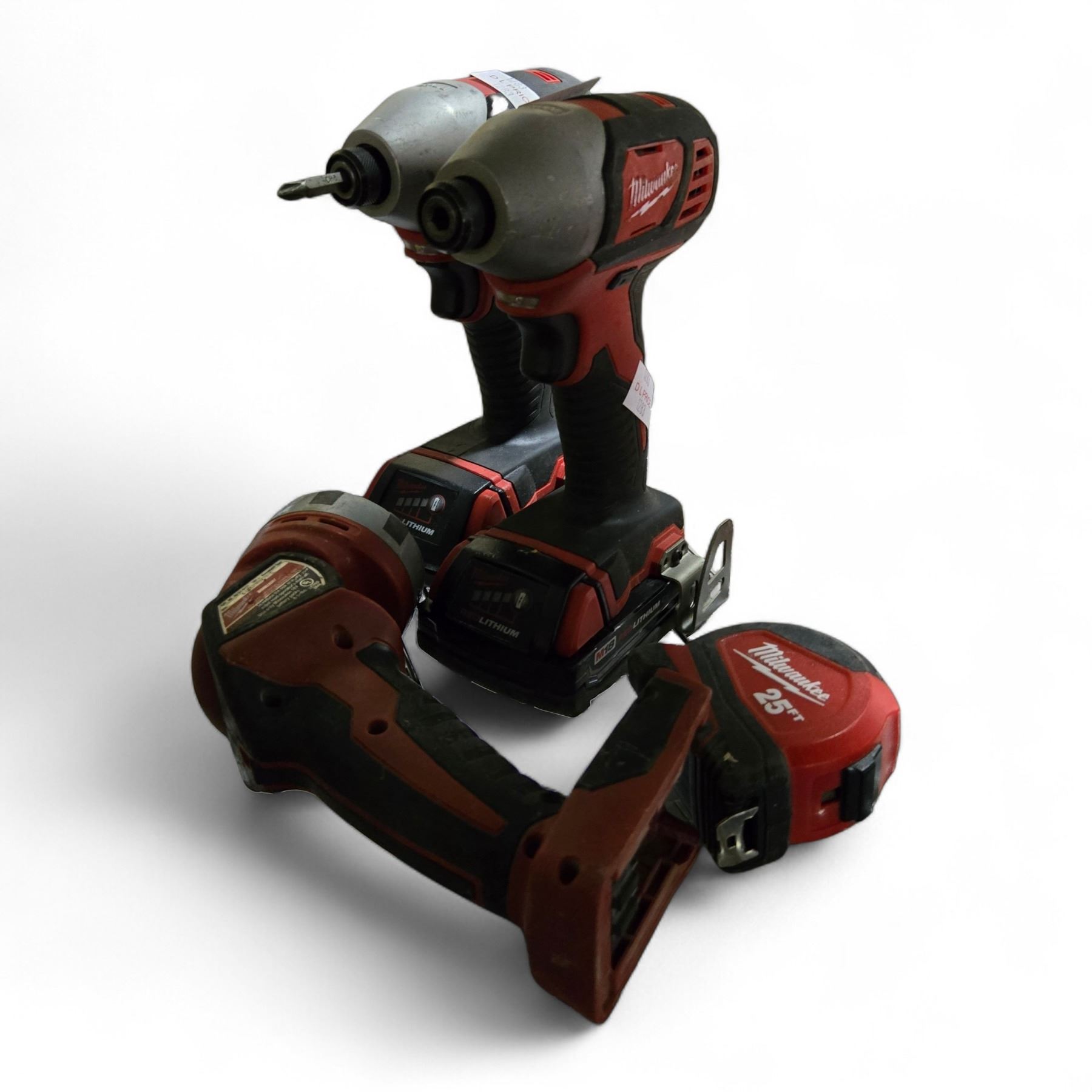 Group of Milwaukee Tools - 25 ft Tape Measure, Worklight, Impact Driver