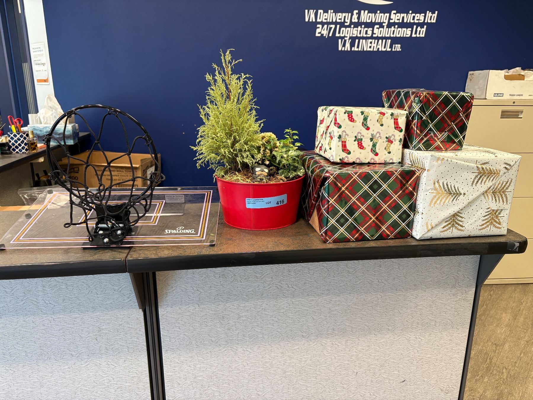 Group of Misc - Basket Ball Door Hook, Faux Plant & Christmas Presents