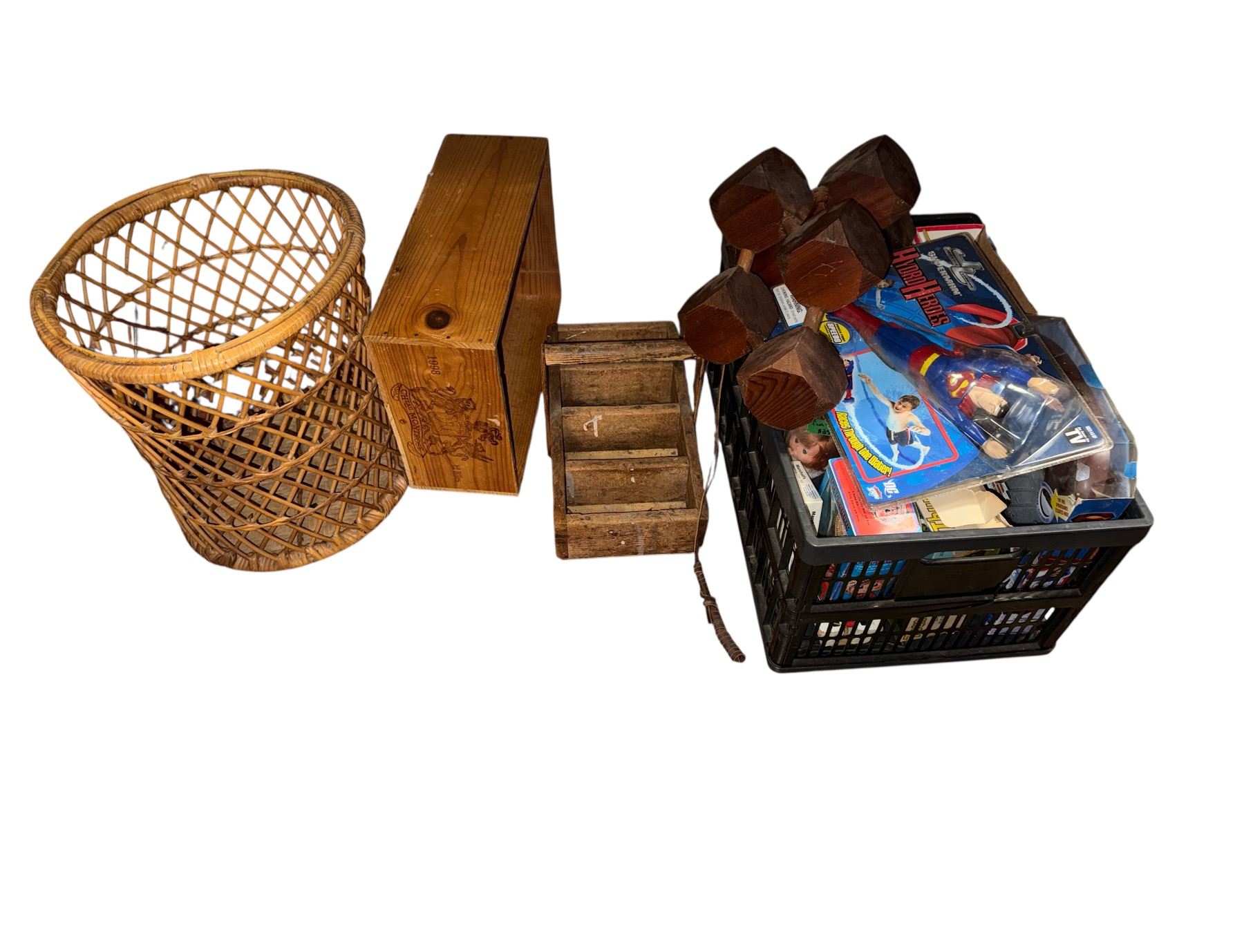 Group of Misc - Basket, Various Vintage Toys, Crate, Etc.