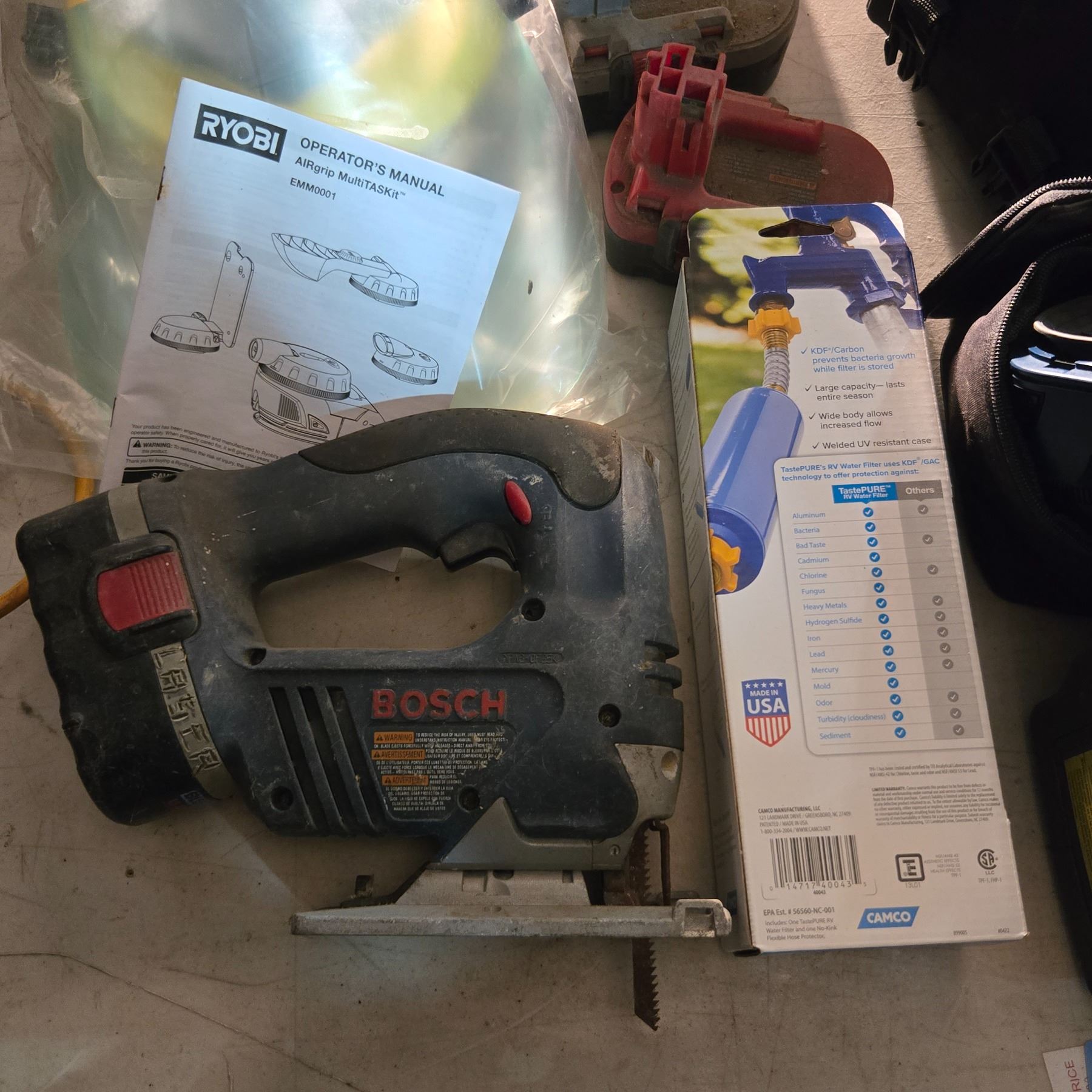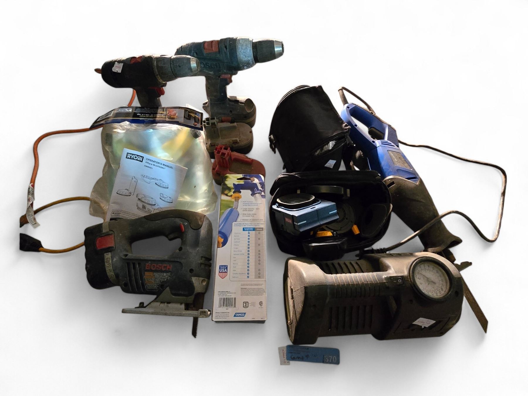 Group of Misc - Bosch Drills, Ryobi AIRgrip, Mastercraft Compact Saw, Etc.