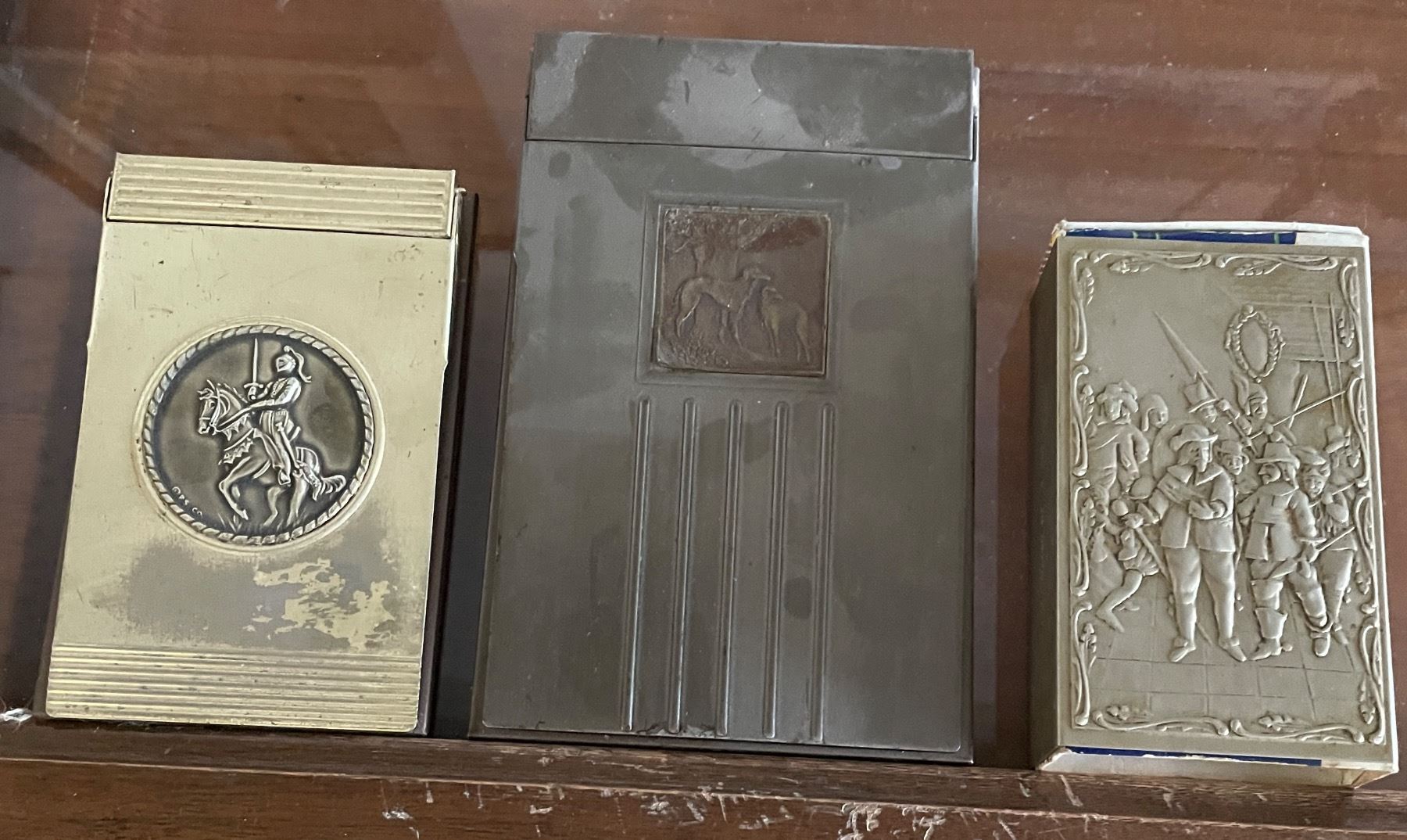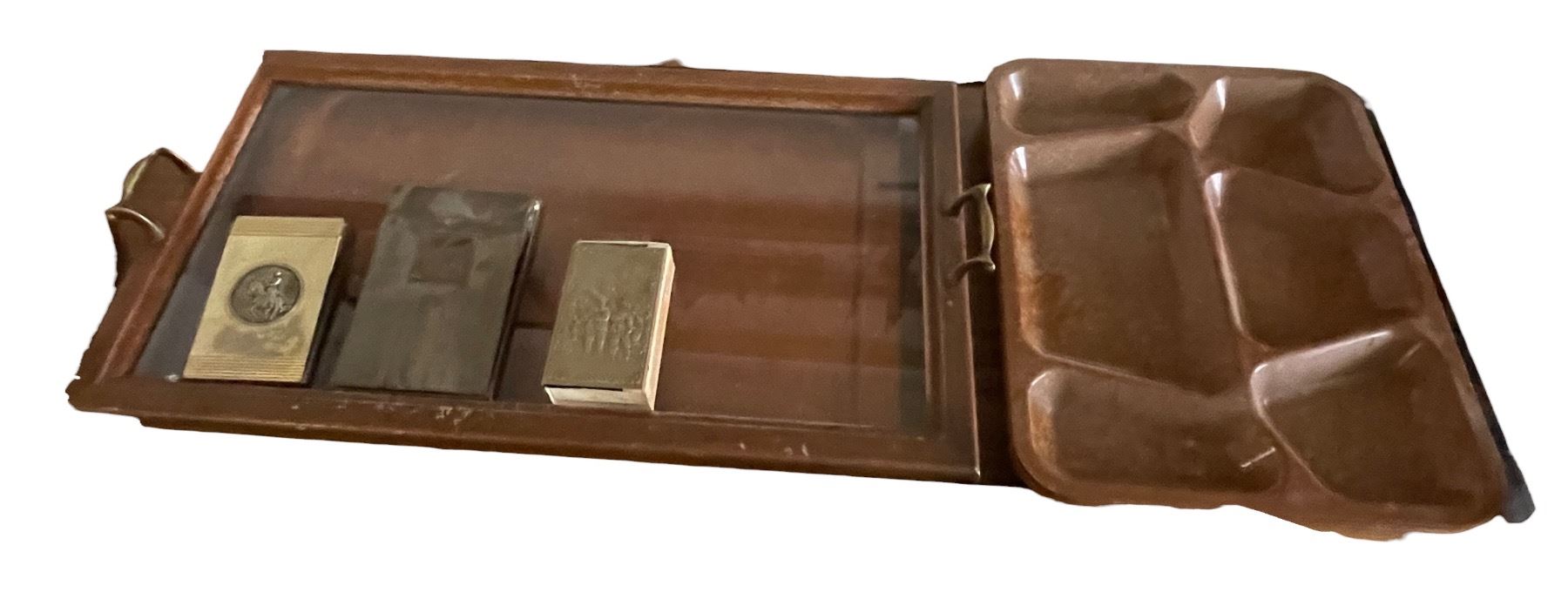 Group of Misc - Cafeteria Trays, Vintage Decorative Metal Matchboxes / Cases, Etc.