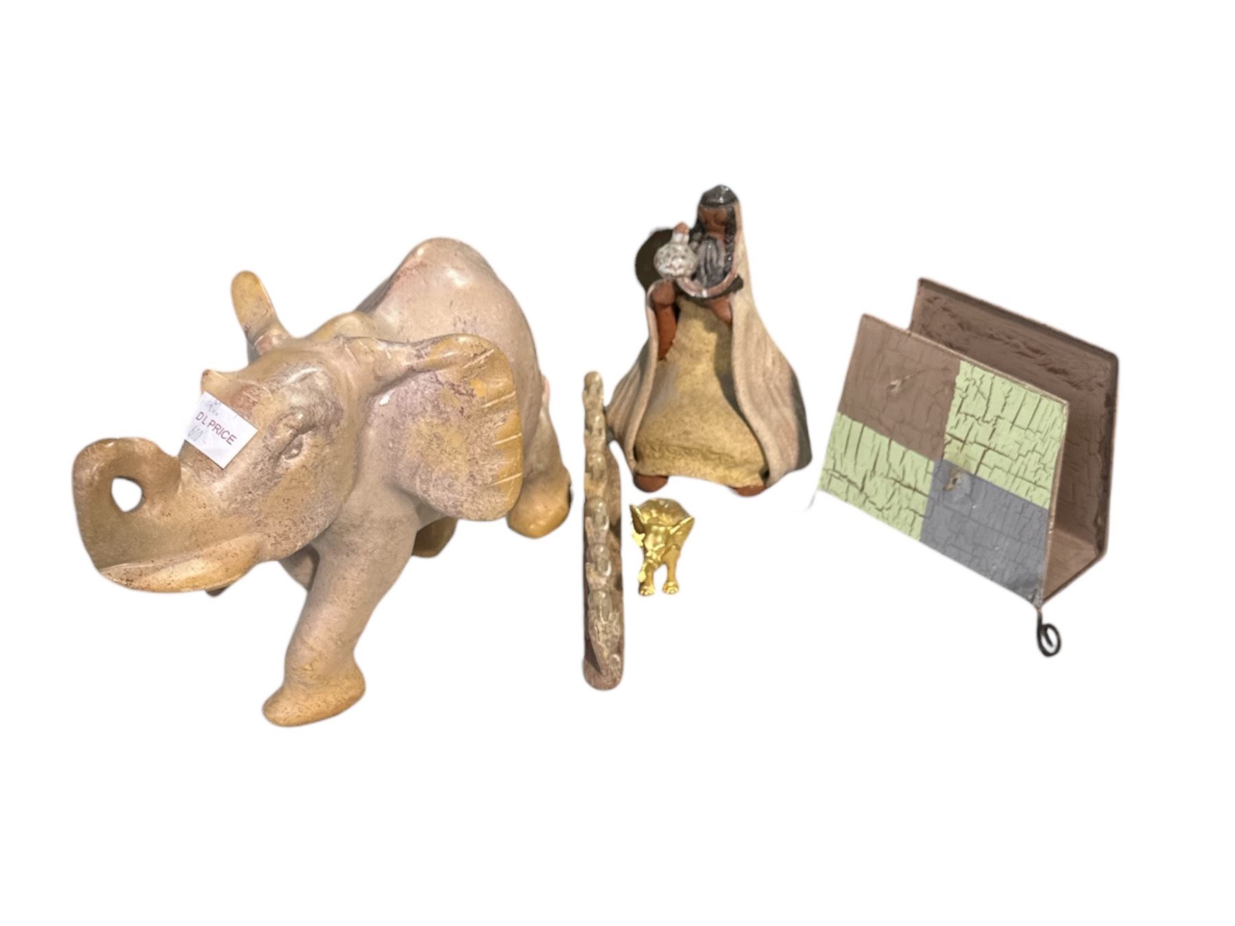 Group of Misc Decor - Elephants, Book Holder, ETc.