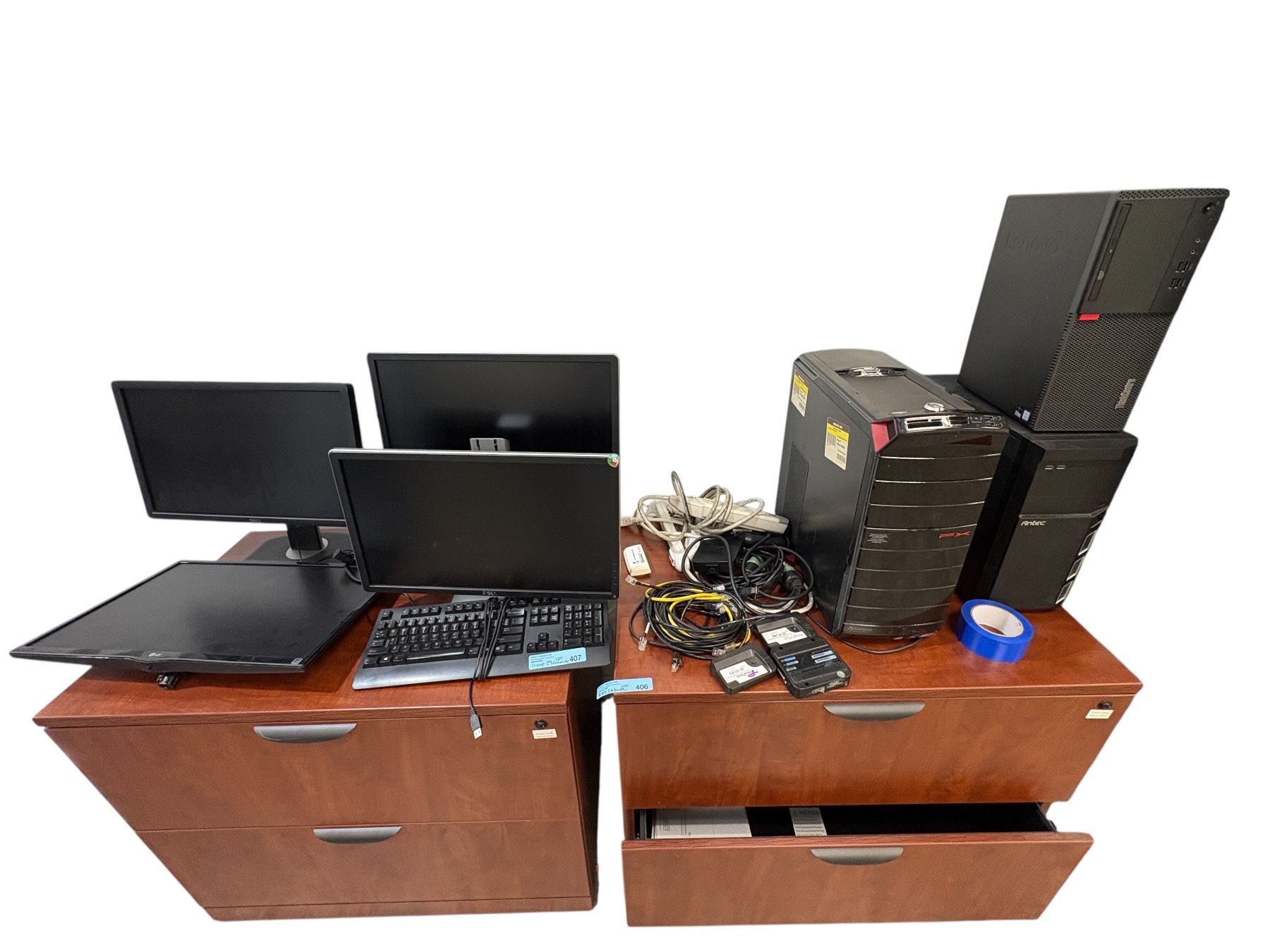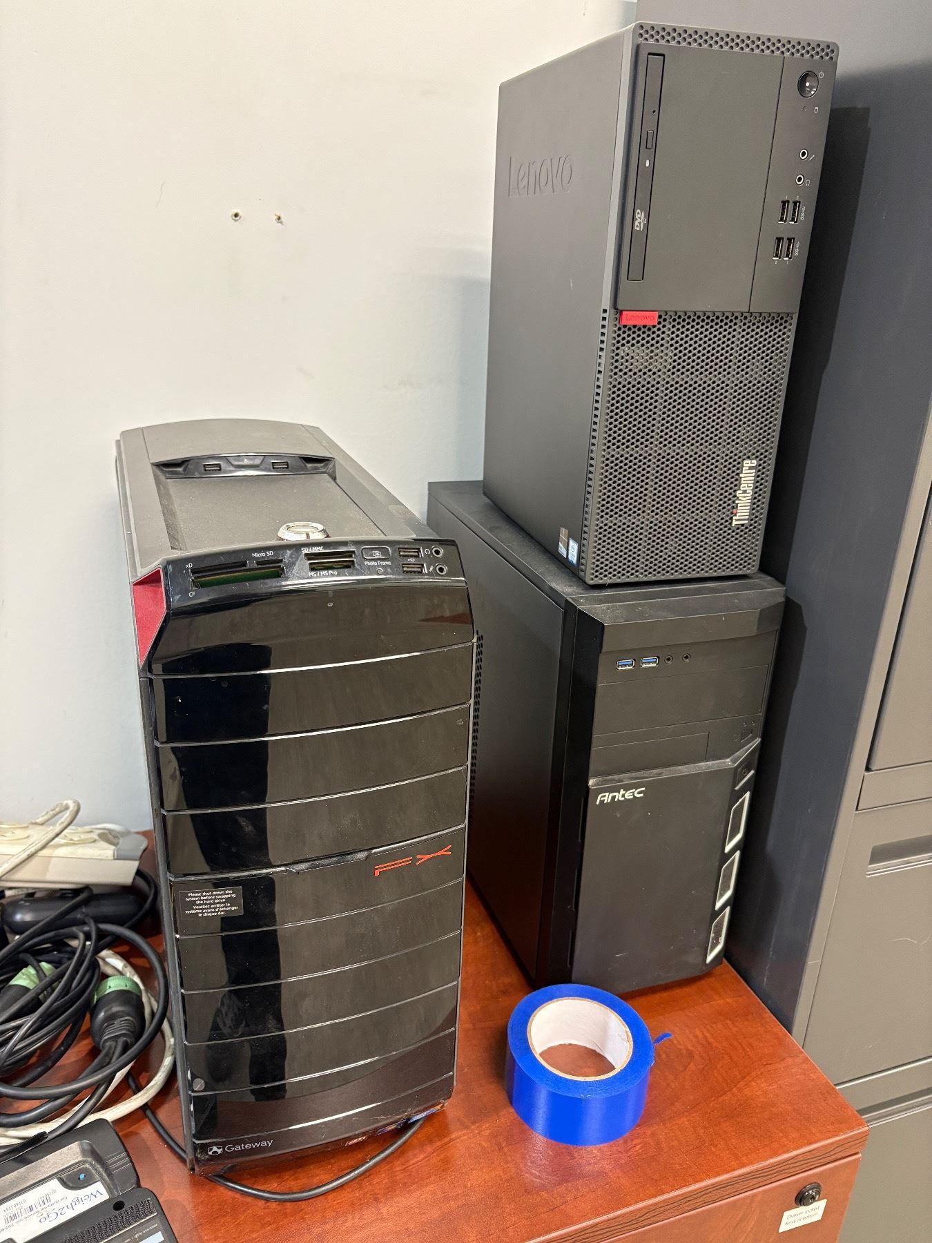 Group of Misc Electronics - 2x ThinkCentre Pc's, FX Gateway PC, 3x Dell Monitors, LG Monitor, Keyboard, Etc.