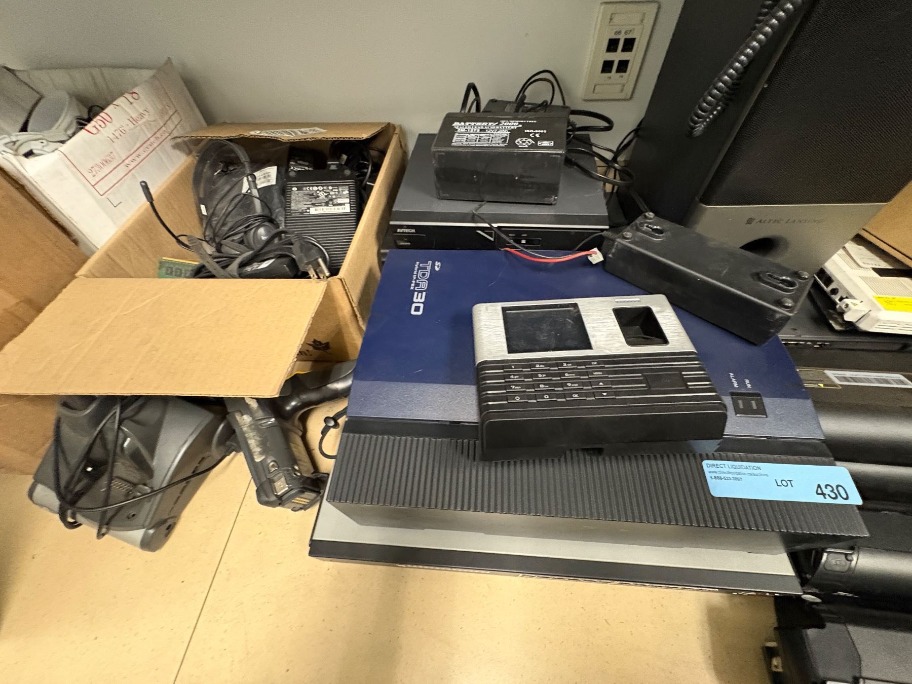 Group of Misc Electronics - TDA30 Hybrid IP-PBX, Battery Packs, Bass Speaker, Wifi Components, Headphones, Security Cameras & Assorted Electronics