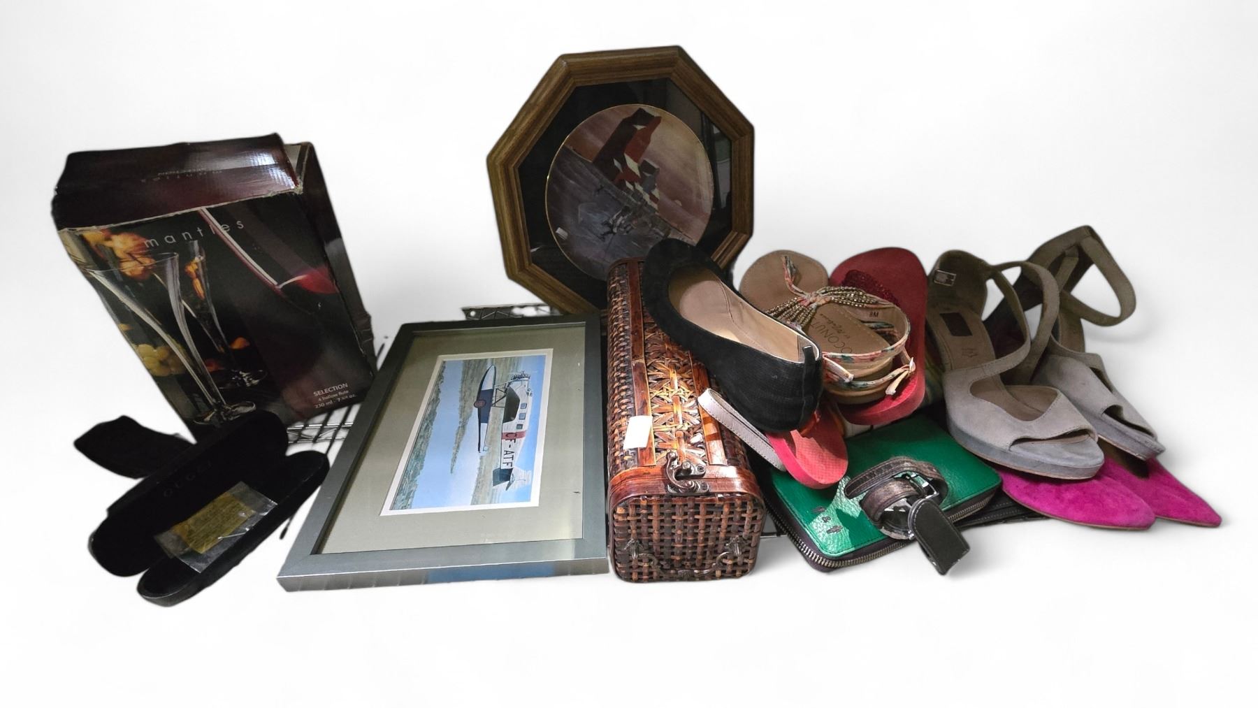 Group of Misc Items - Includes 4 Hollow Flutes, Art, Shoes, Home Decor & Accessories