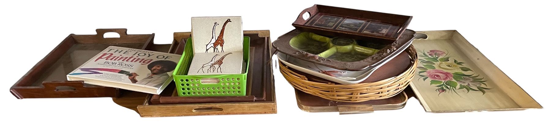 Group of Misc - Joy of Painting Book, Giraffe Art Decor, Platter Trays, Etc.