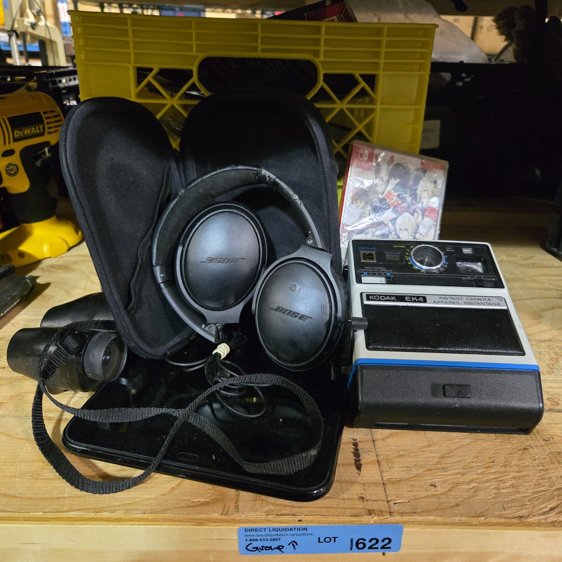 Group of Misc - Kodak EK4, Bose Headphones, Binoculars, Camera Lens, Books, Etc.