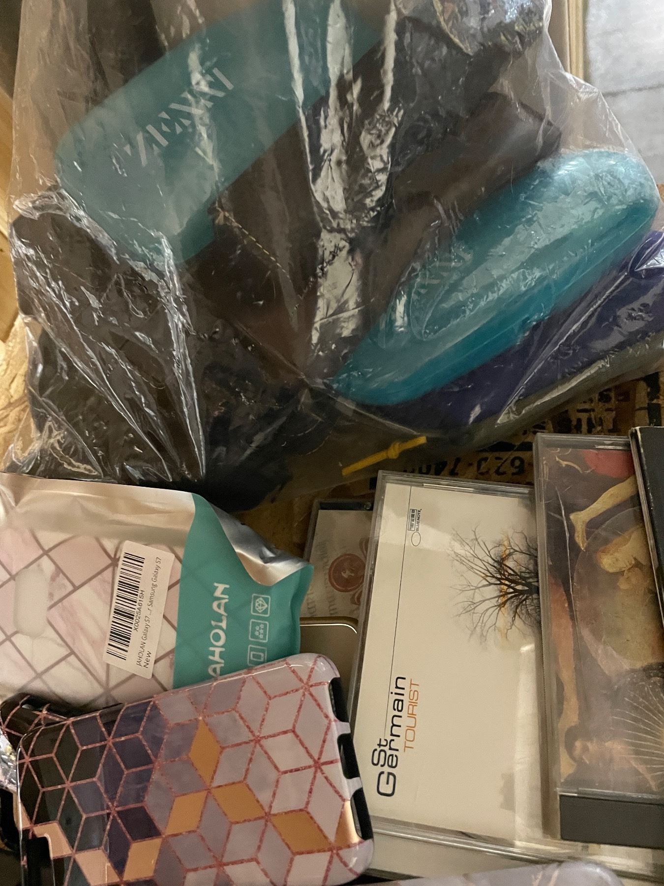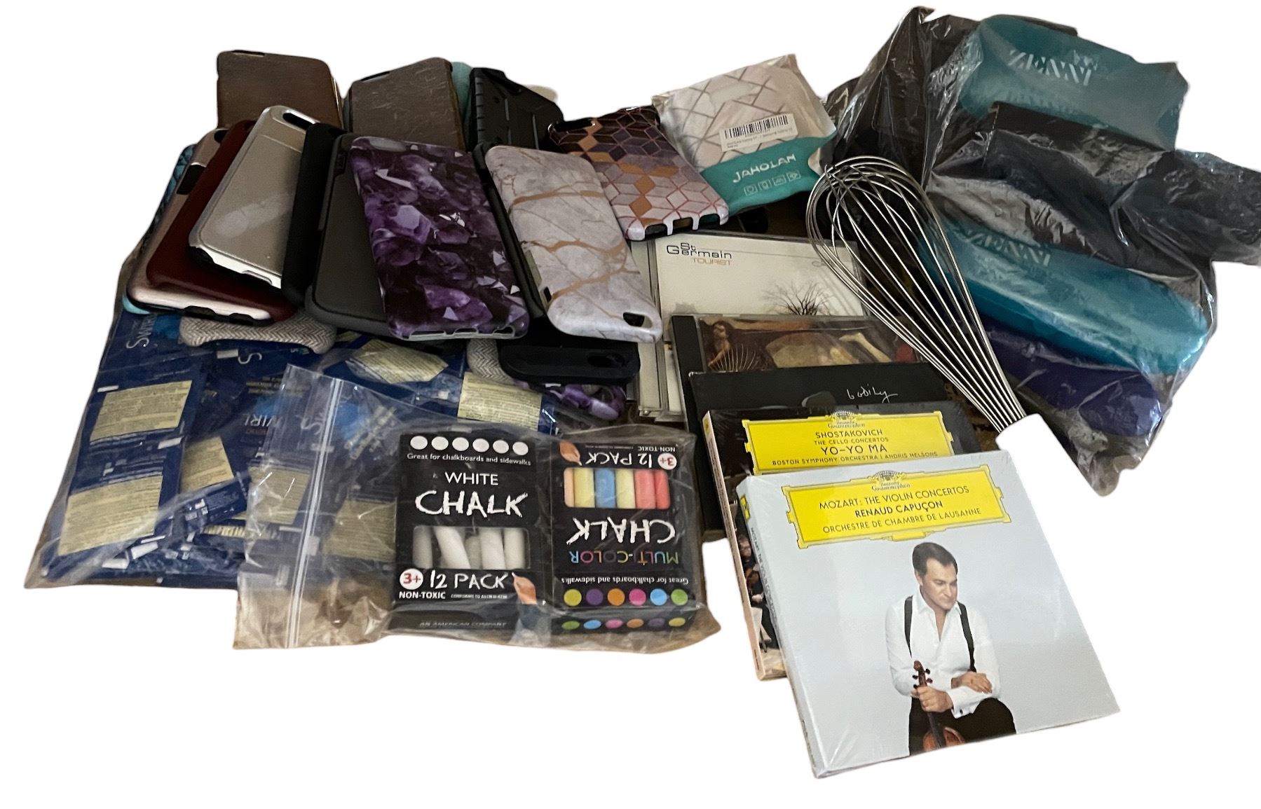 Group of Misc Set Dec - CD's, Phone Cases, Sunglass Cases, Etc.