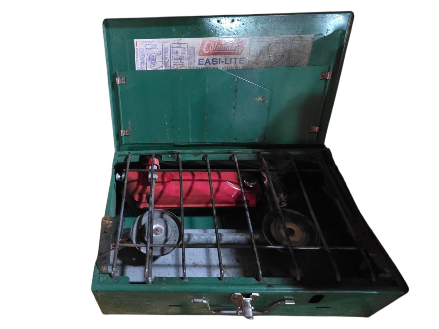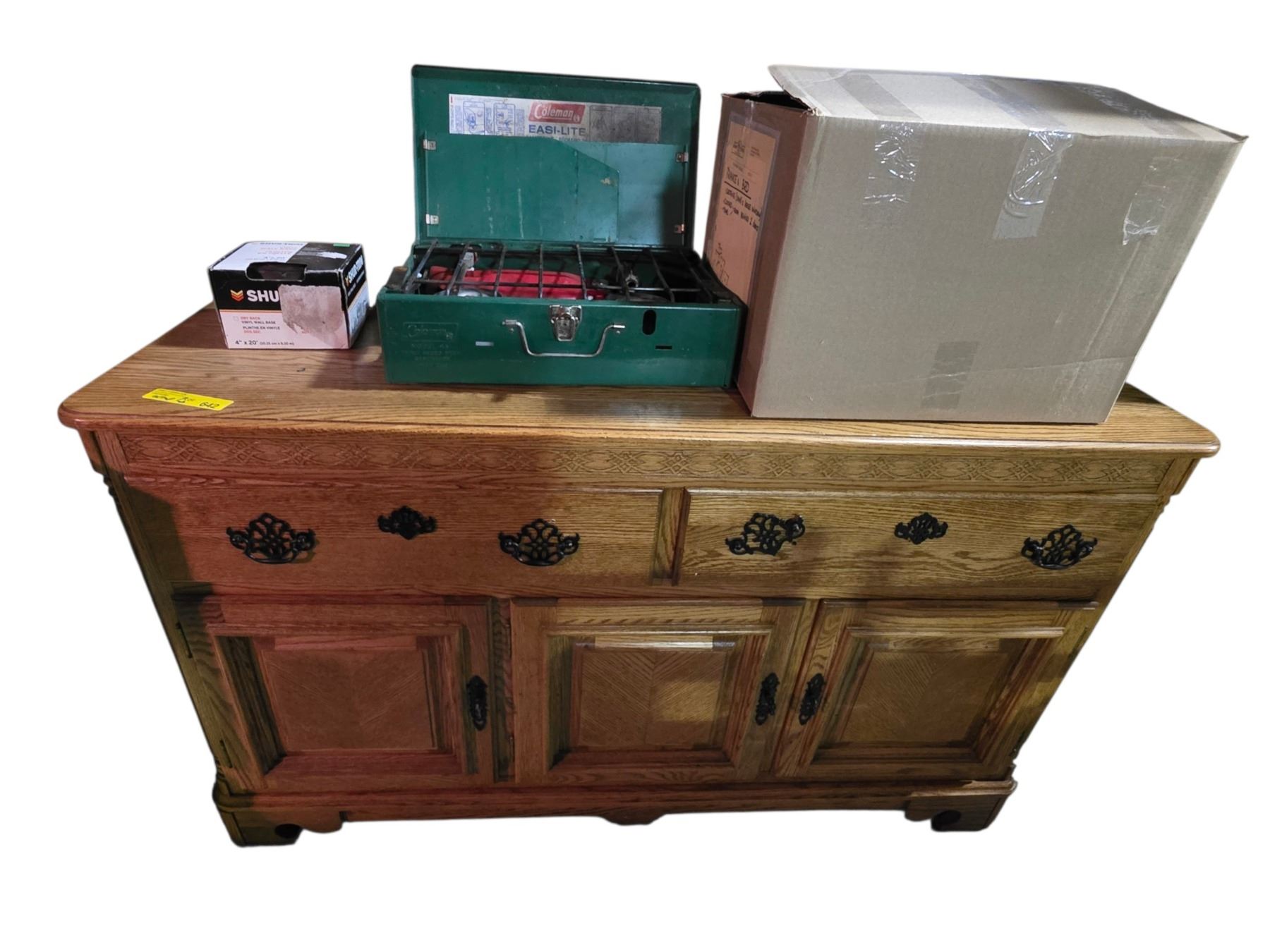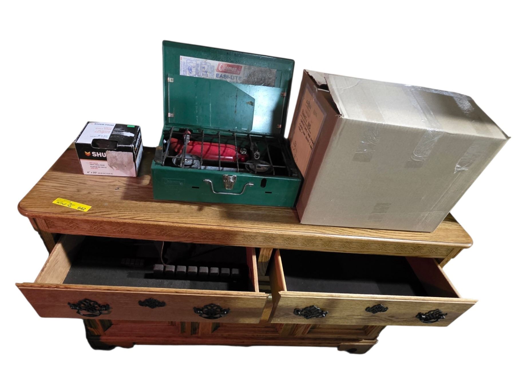 Group of Misc - Wooden Dresser, Vinyl Wall Base, Decor/Prop, Coleman Gas Stove, Etc.