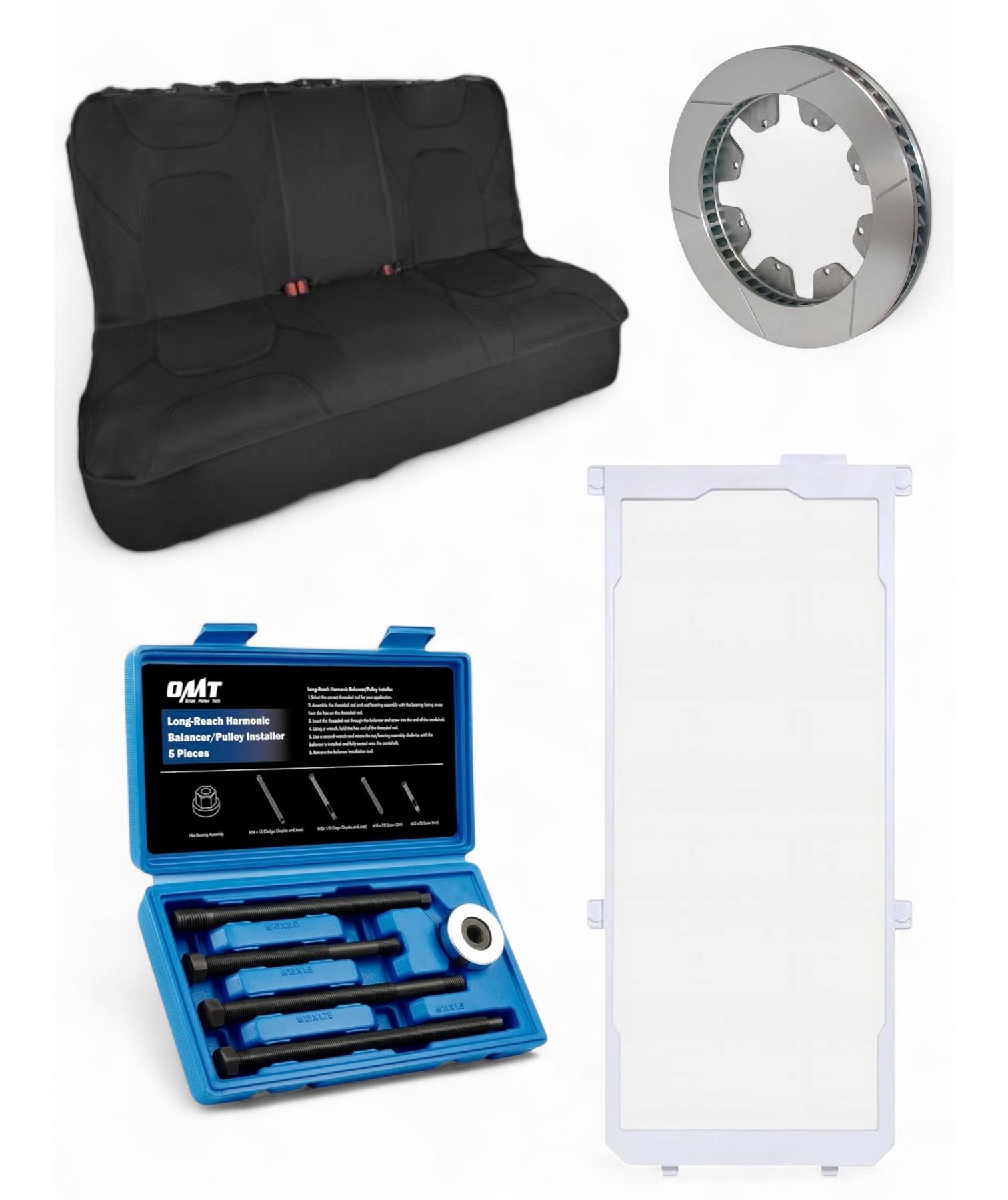 Group of Misc - ew Spec Extreme Performance Brake Rotors, BNIB Waterproof Bench Rear Seat Protector, BNIB Group of 5 Orion Motor Tech Wire Connector 4 Pack, Etc.