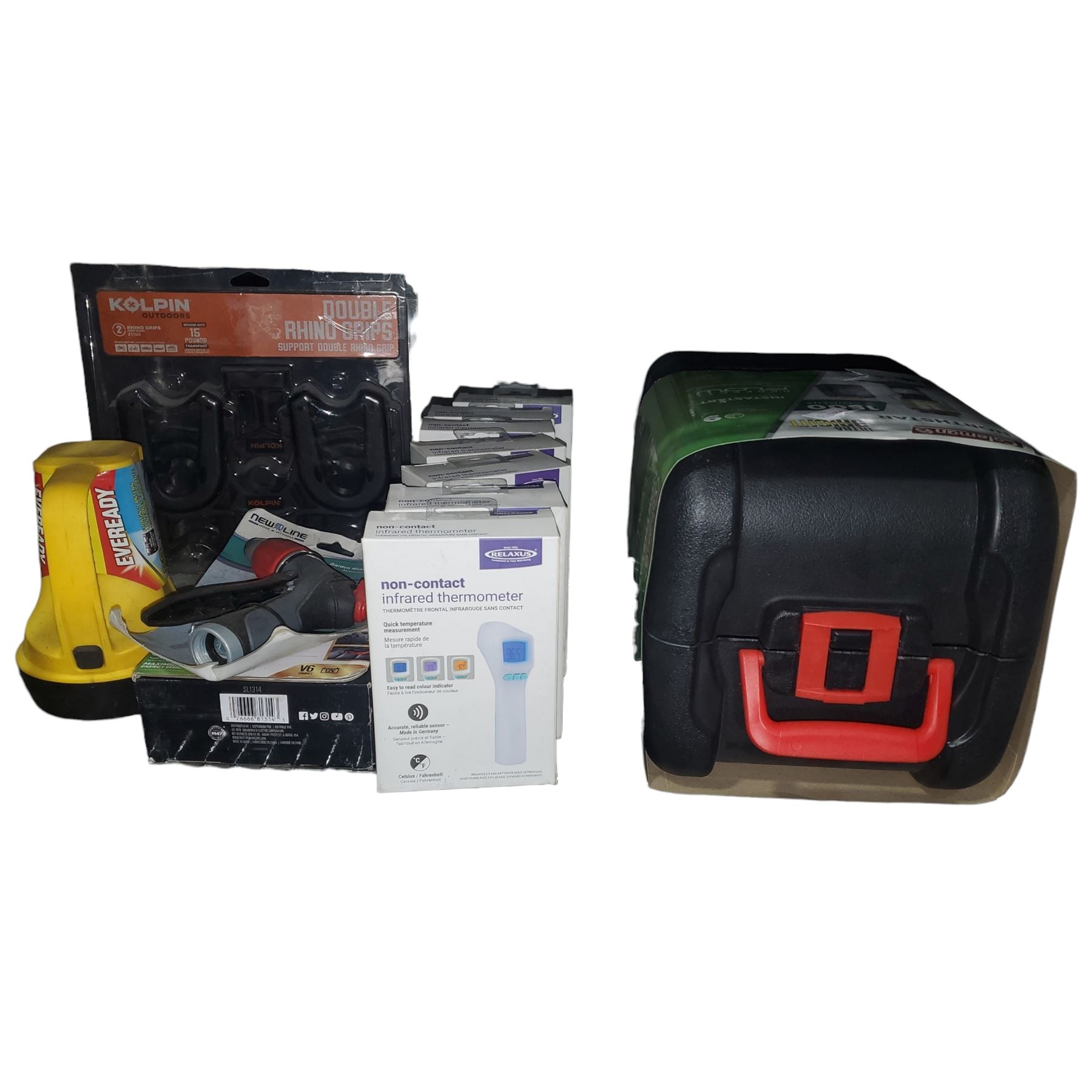 Group of Outdoor Tools - Coleman Northstar Lantern, Shovles, Infared Thermometers, and More