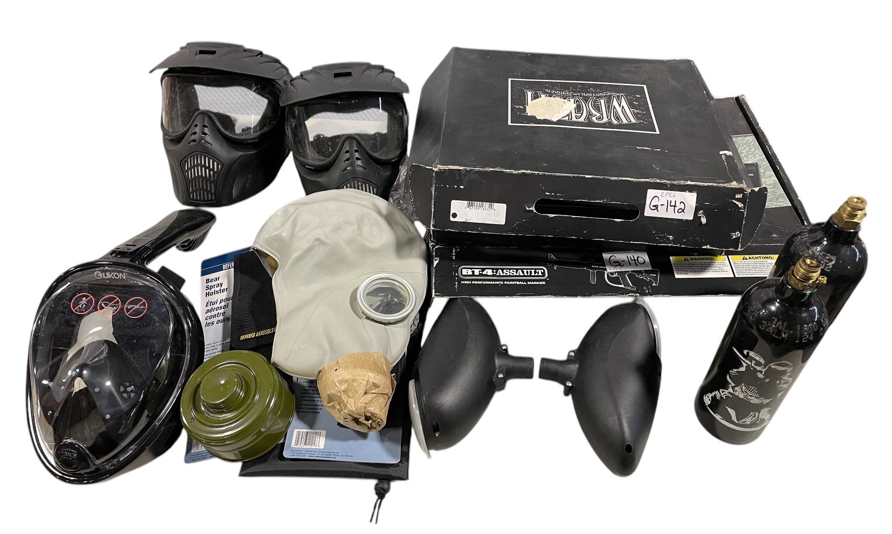 Group of Paintball Equipment Includes - BT-4 Assault Paintball Gun w/Box, Diablo Wrath Paintball Gun w/Box, Headgear, Russian Facemask, Etc.