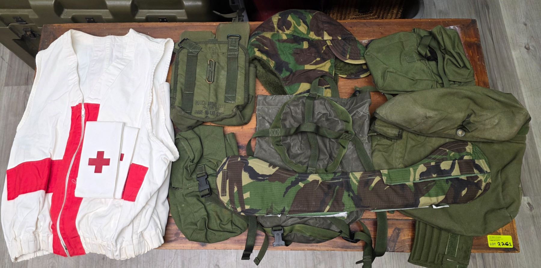 Group of Red Cross & Military Style Clothing - Caps, Utility Pouches, Nape Protector and more