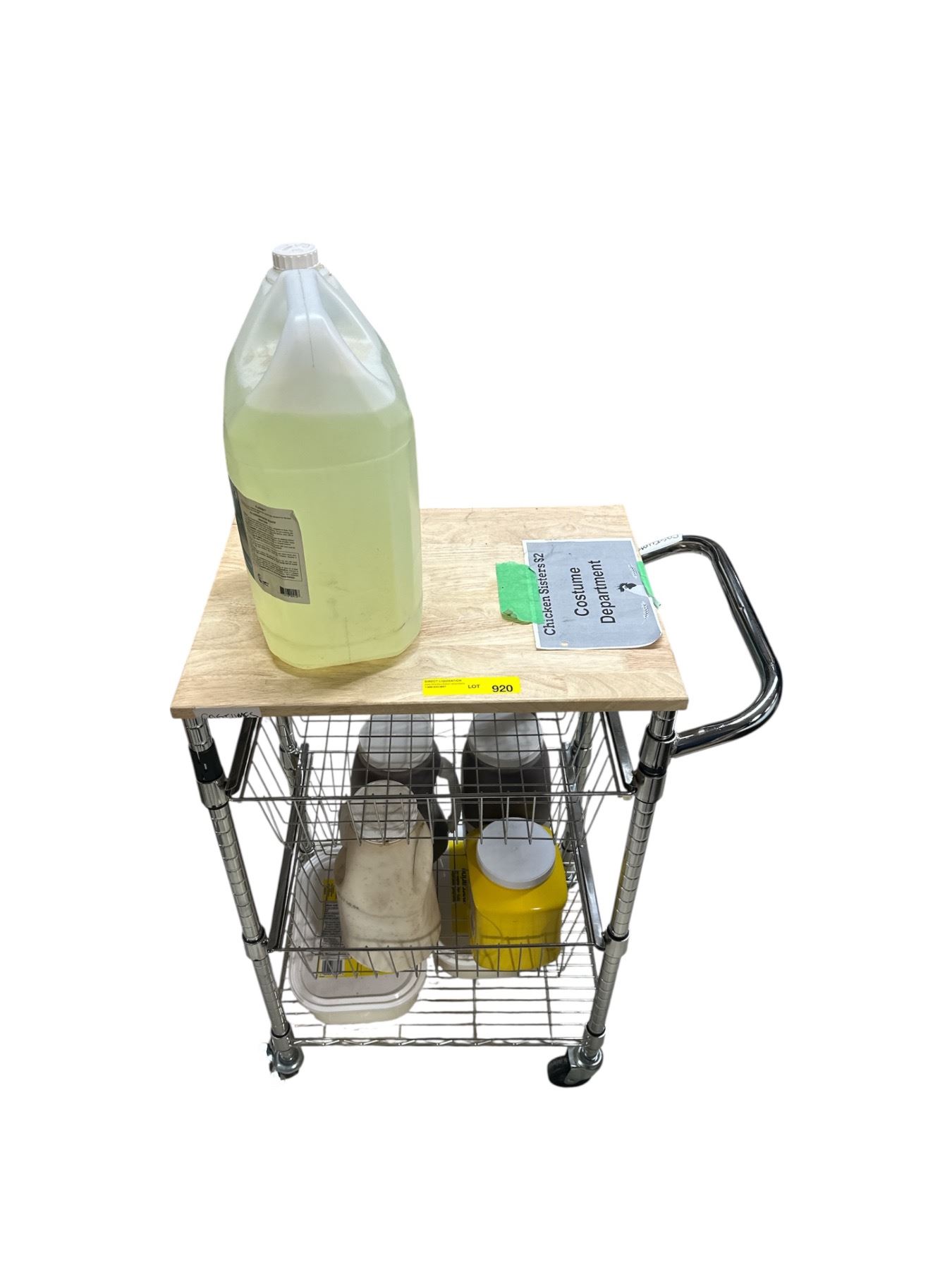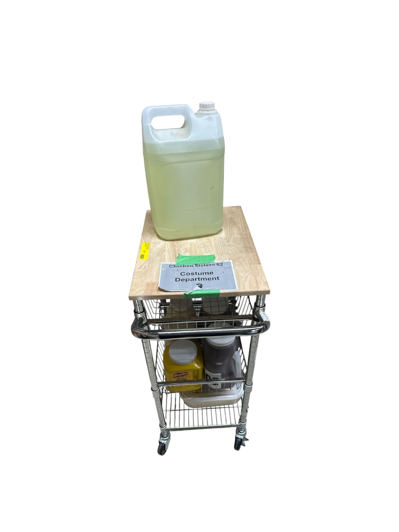 Group of Rolling Cart w/Wood Top w/Bleach, Ranch, 2x Marinade, Etc.