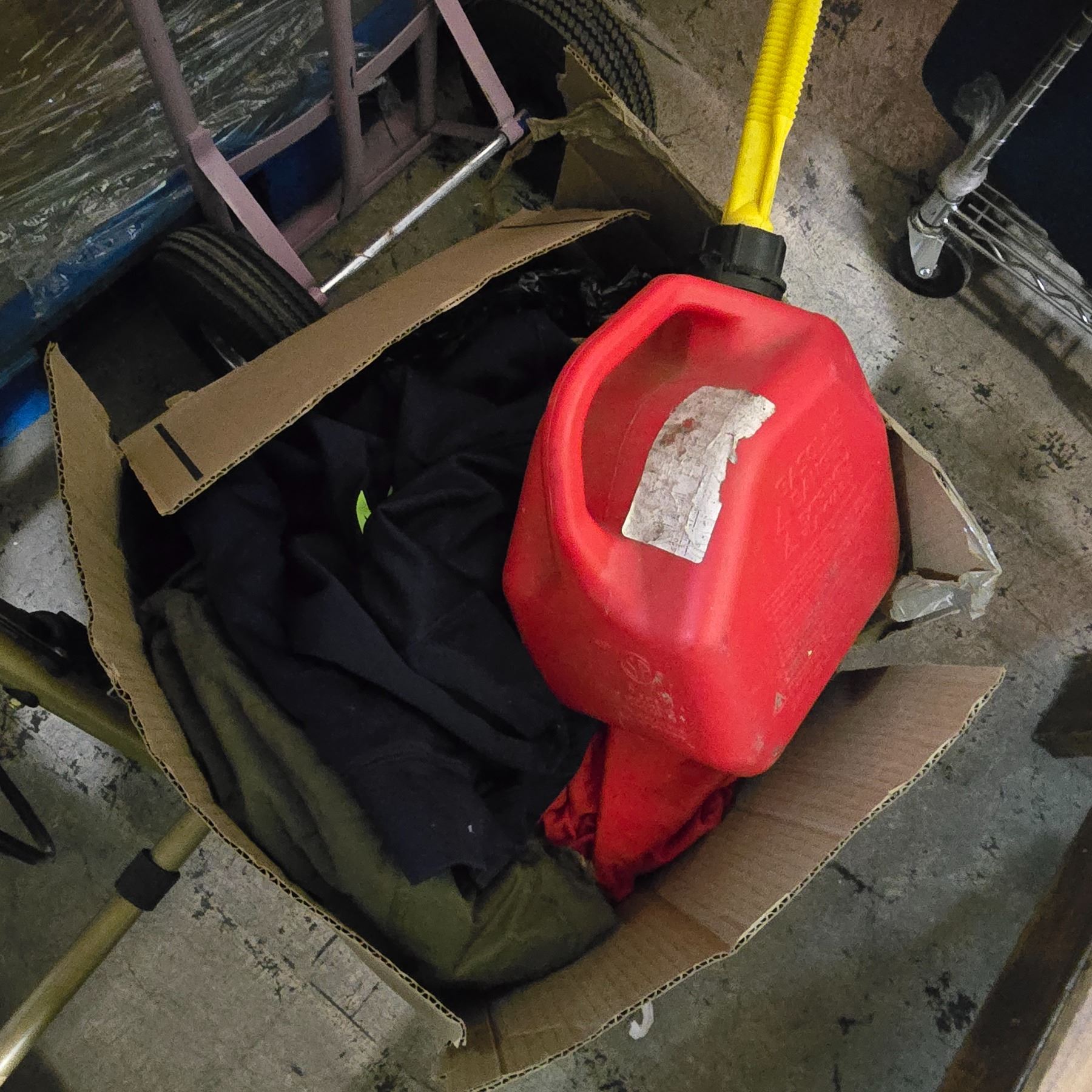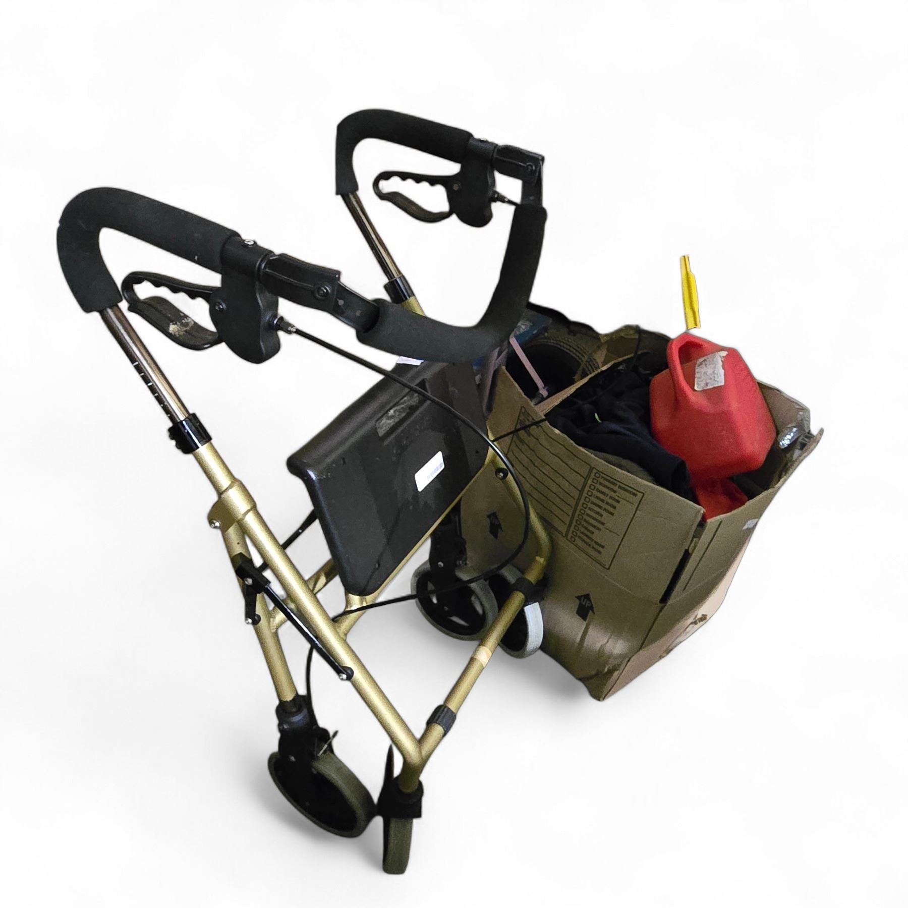 Group of Rolling Walkers, Gas Can, Clothing, Etc.