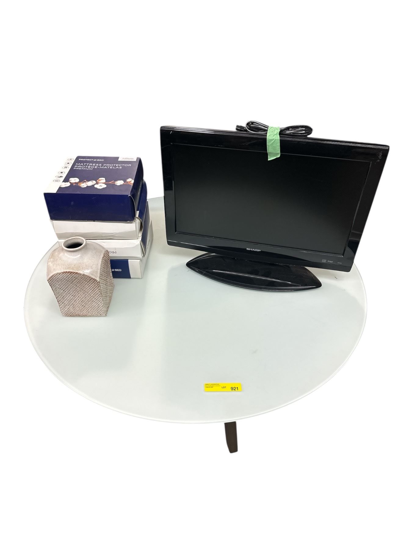 Group of Round Table w/Sharp TV, 4x Mattress Protector & Vase