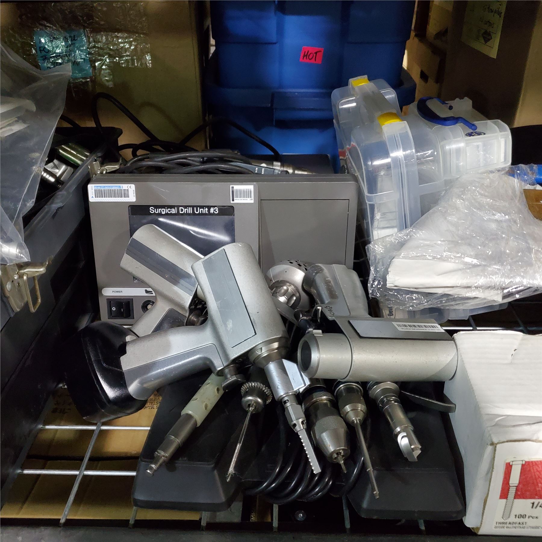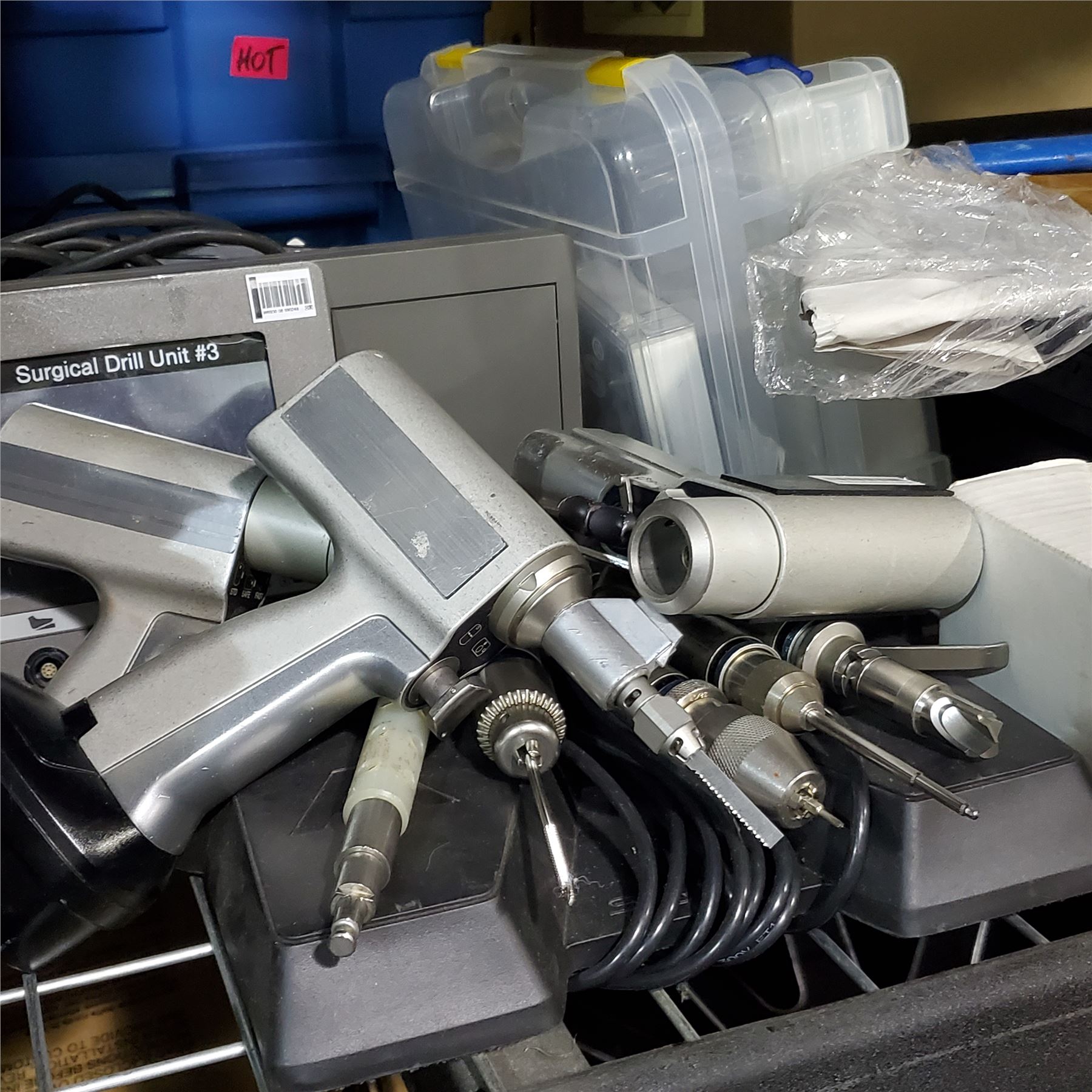 Group of Surgical Tools, Drill Unit, Multiple Attachments, TV, and More