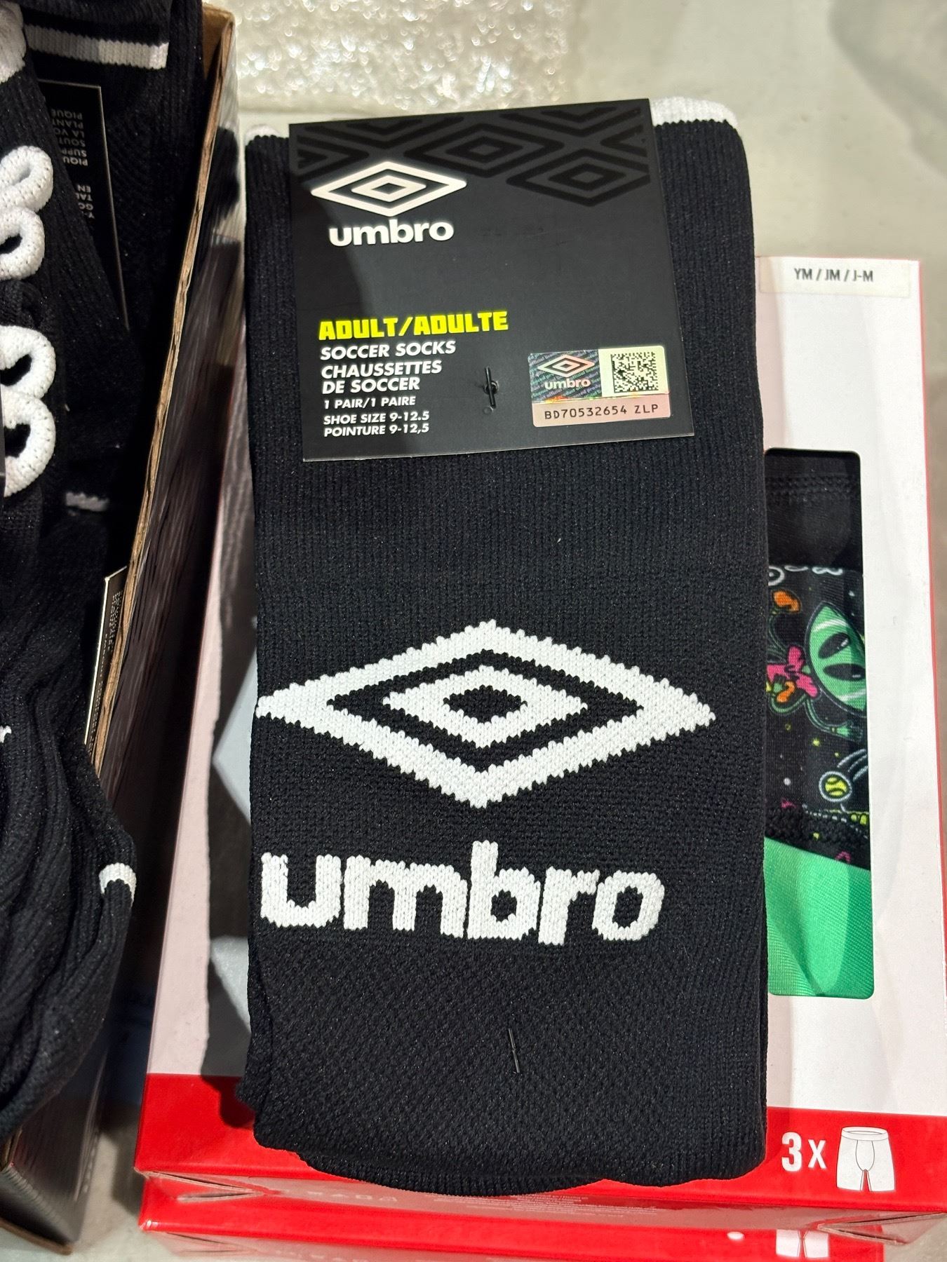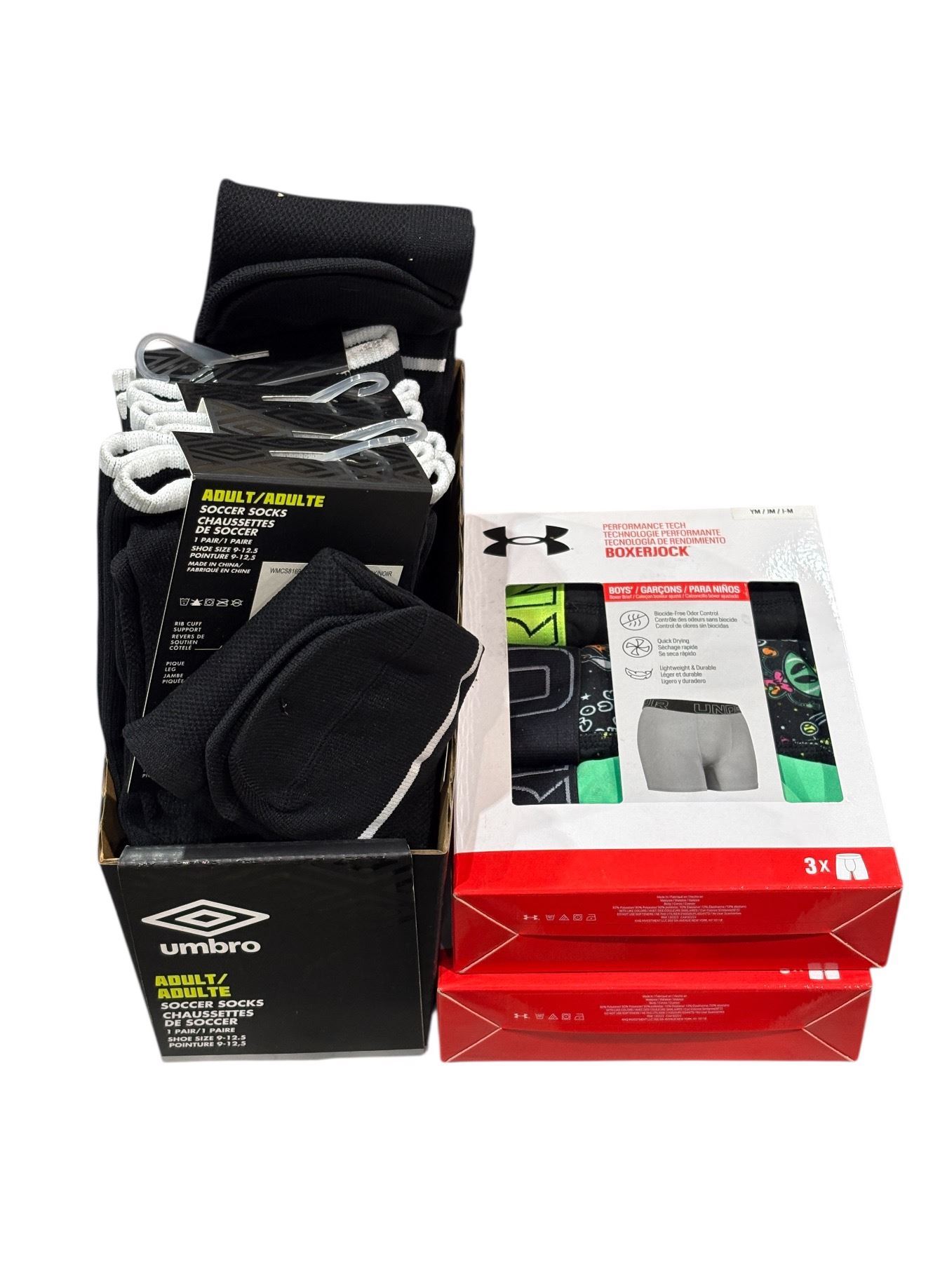 Group of Under Armour Medium boxer jocks & Umbro adult soccer socks size 9-12.5