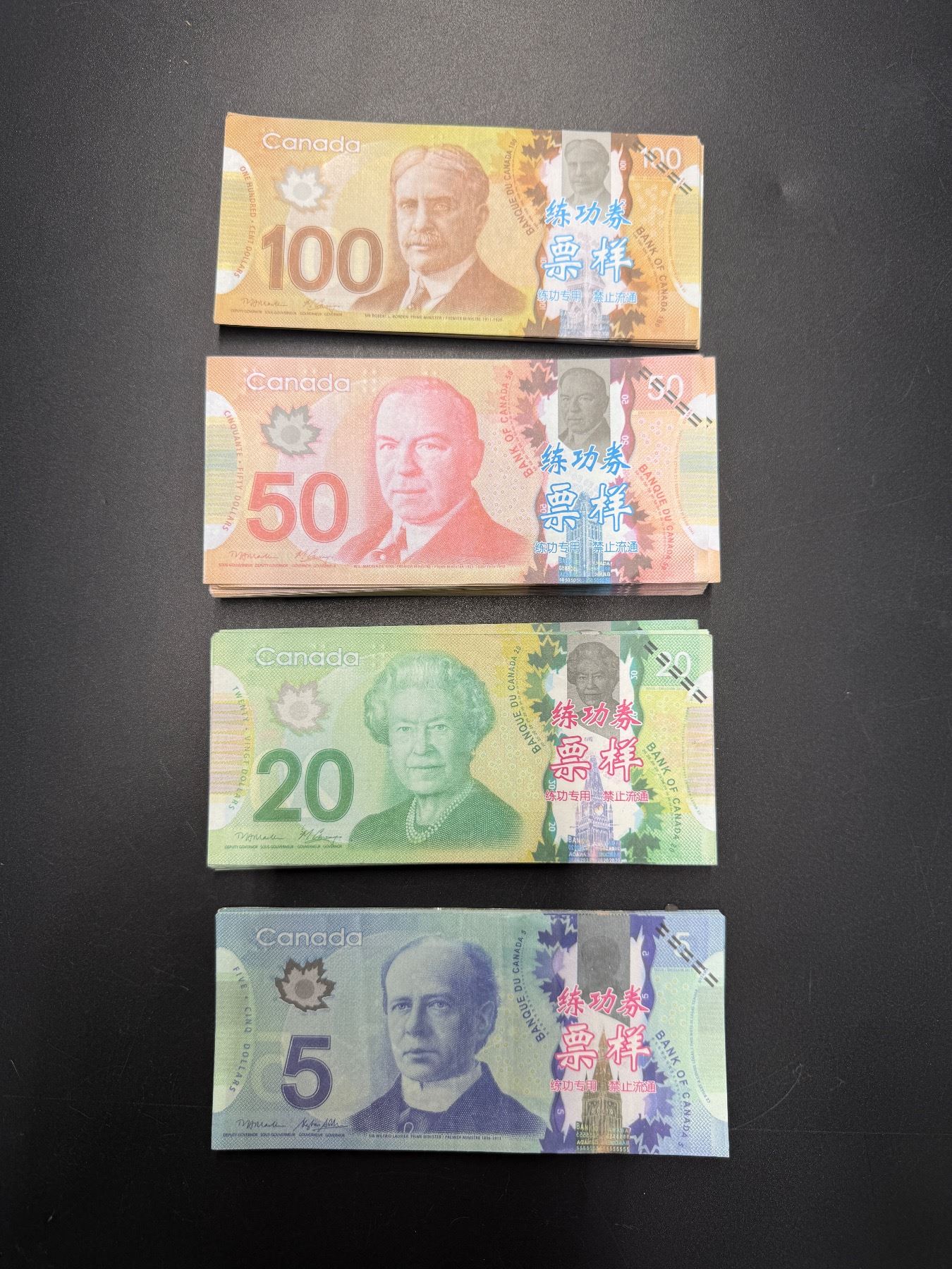 Group of Various CAD Prop Money - 5's, 20's, 50's, 100's
